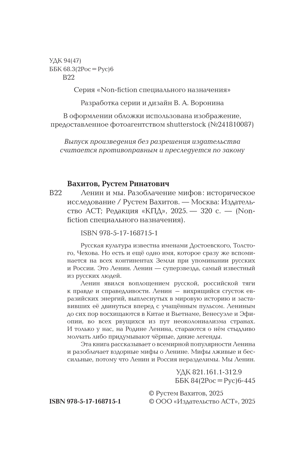 Эта книга рассказывает о всемирной популярности Ленина и разоблачает вздорные мифы о Ленине. Мифы лживые и бессильные, потому что Ленин и Россия неразделимы. Мы Ленин.
