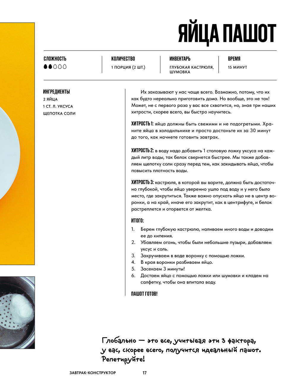 С главой "Завтрак-конструктор" вы освоите базу: яичница и омлет, драники и панкейки, соусы и вкусные дополнения. Сочетайте их, как хотите, на то он и конструктор!