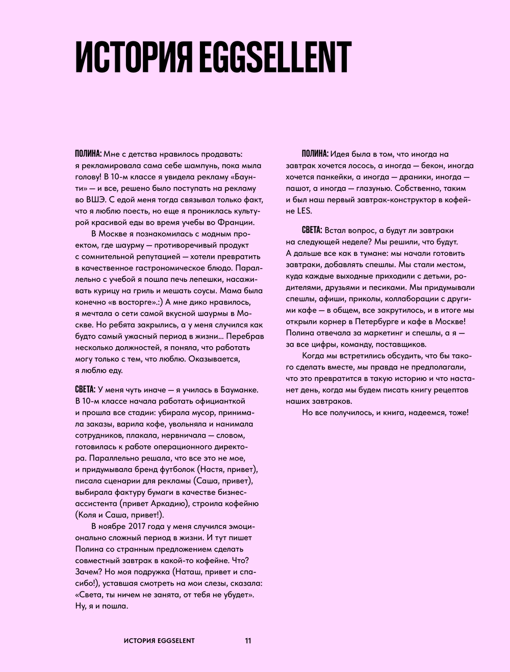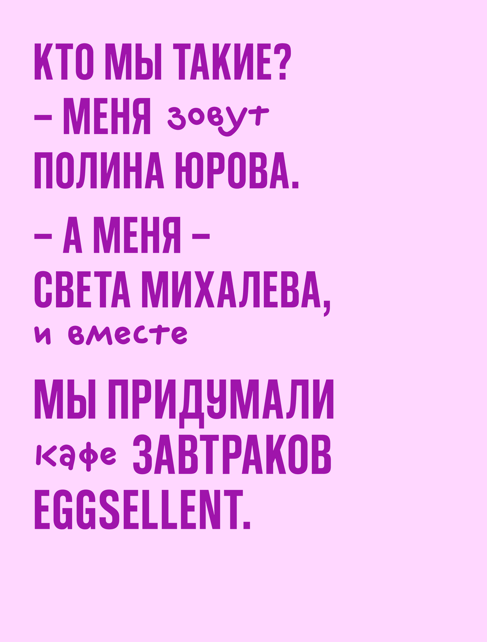 История EGGSELLENT началась с простого желания: давай сделаем классный завтрак для друзей? И вот уже больше 7 лет Полина и Света встречают в четырех кафе гостей Москвы и Петербурга. А теперь вы сможете приготовить их фирменные блюда у себя дома!