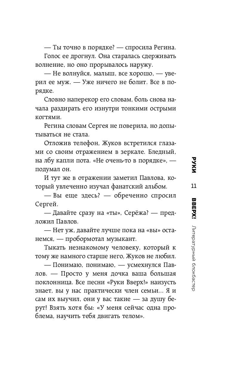 Литературная адаптация нашумевшего фильма "Руки Вверх!", основанного на реальных событиях. Как из провинциального мальчишки, мечтающего впечатлить девушку робкими песнями о любви, Сергей Жуков стал одним из самых востребованных артистов страны и голосом целого поколения. Где он познакомился с Алексеем Потехиным, как молодые исполнители искали первого продюсера, проходили испытания славой и после чего их пути разошлись...
