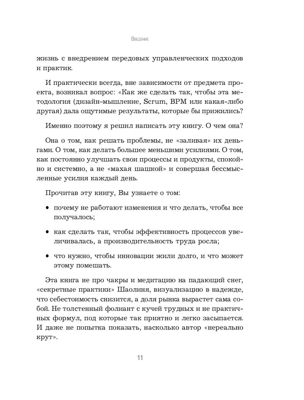 Ответы на них автор дает на страницах своей книги. Но главное, вы узнаете почему Agile, бережливое производство, Лин 6 Сигма и прочие методологии не работают и как все-таки заставить их приносить результаты.