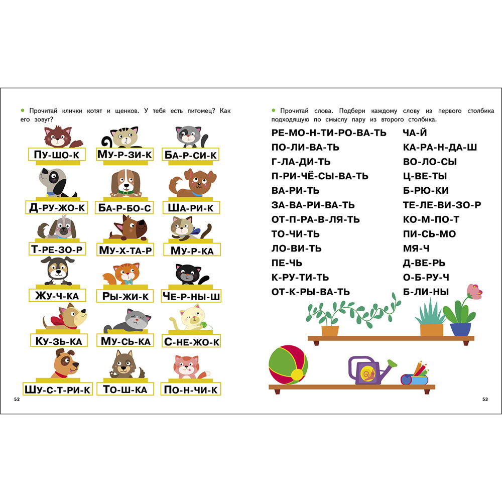 Эта рабочая тетрадь Елены Ульевой по обучению чтению предназначена для детей, хорошо знающих буквы. После закрепления навыка чтения складов ребенку предлагается чтение слов – от самых коротких и простых до более сложных, затем чтение предложений и небольших текстов.