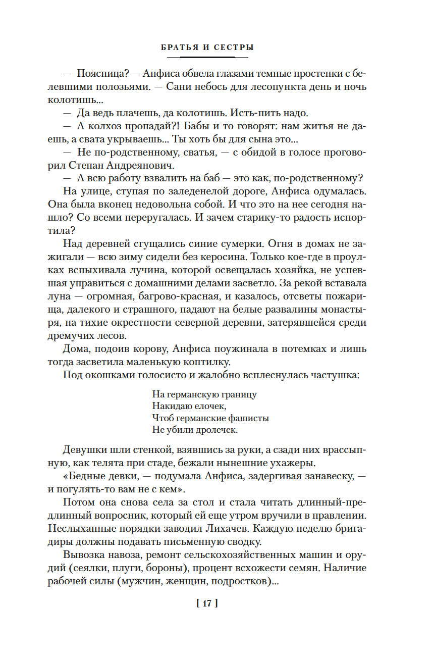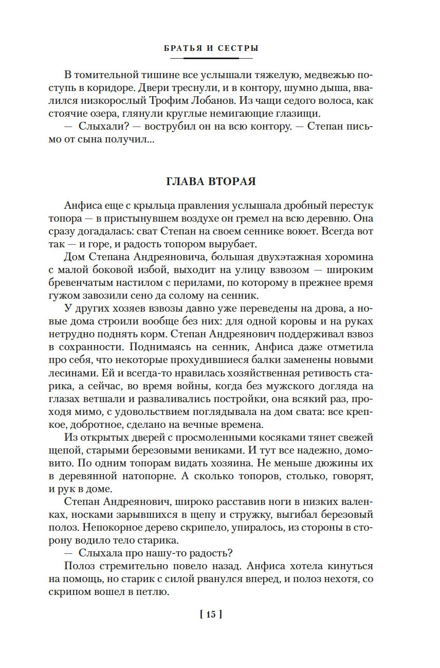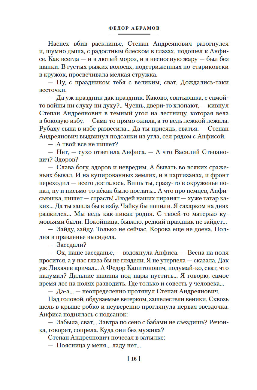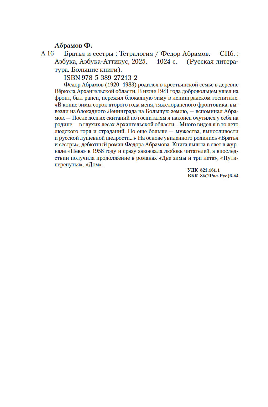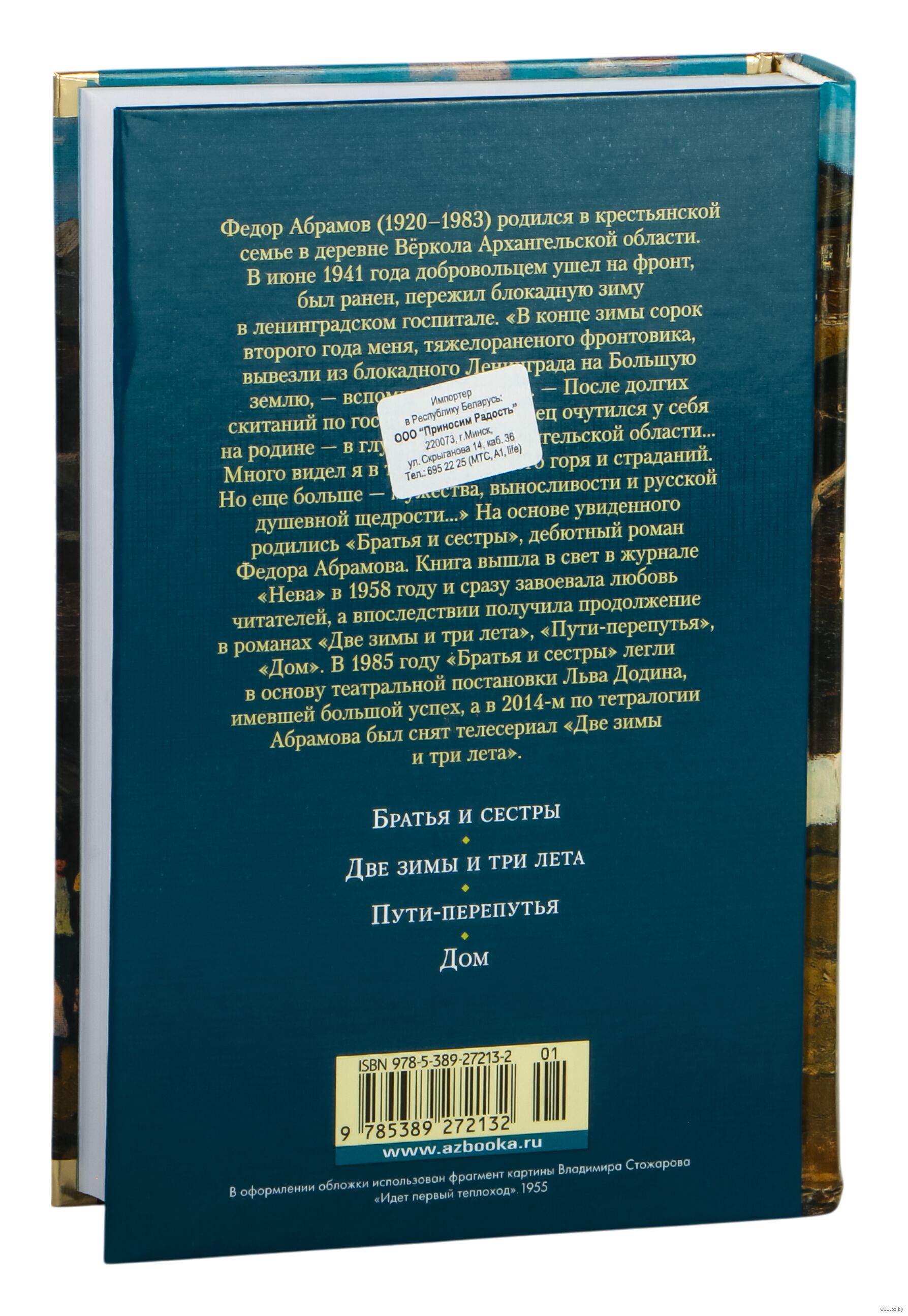 Федор Абрамов (1920-1983) родился в крестьянской семье в деревне Вёркола Архангельской области. В июне 1941 года добровольцем ушел на фронт, был ранен, пережил блокадную зиму в ленинградском госпитале. "В конце зимы сорок второго года меня, тяжелораненого фронтовика, вывезли из блокадного Ленинграда на Большую землю, – вспоминал Абрамов. – После долгих скитаний по госпиталям я наконец очутился у себя на родине – в глухих лесах Архангельской области... Много видел я в то лето людского горя и страданий. Но еще больше – мужества, выносливости и русской душевной щедрости..." На основе увиденного родились "Братья и сестры", дебютный роман Федора Абрамова. Книга вышла в свет в журнале "Нева" в 1958 году и сразу завоевала любовь читателей, а впоследствии получила продолжение в романах "Две зимы и три лета", "Пути-перепутья", "Дом".