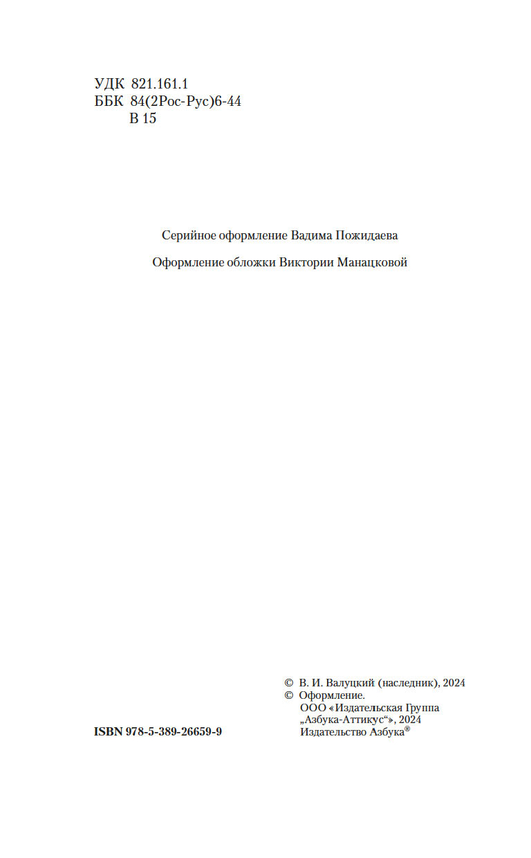 Владимир Валуцкий (1936-2015) – автор сценариев многих любимых зрителями фильмов ("Ярославна, королева Франции", "Король шантажа", "Смертельная схватка" и "Охота на тигра" о приключениях Шерлока Холмса и доктора Ватсона, "Мэри Поппинс, до свидания!" и других). Однако в конце жизни он говорил: "Работа сценариста по природе своей – нервная... Куда проще и приятнее сочинять неторопливую прозу. Она меня, собственно, всегда влекла и соблазняла, и в перерывах между киноделами я писал что-то".