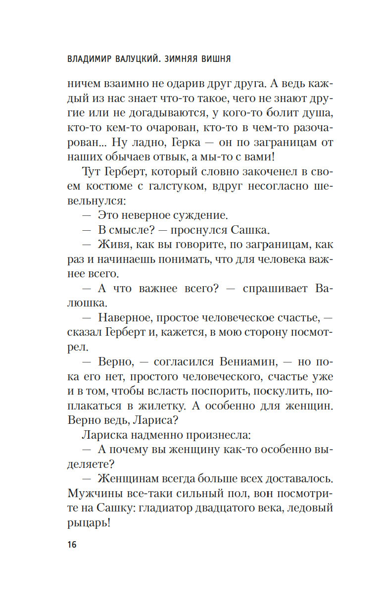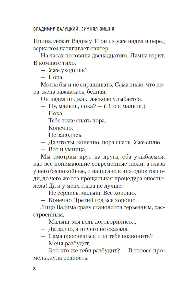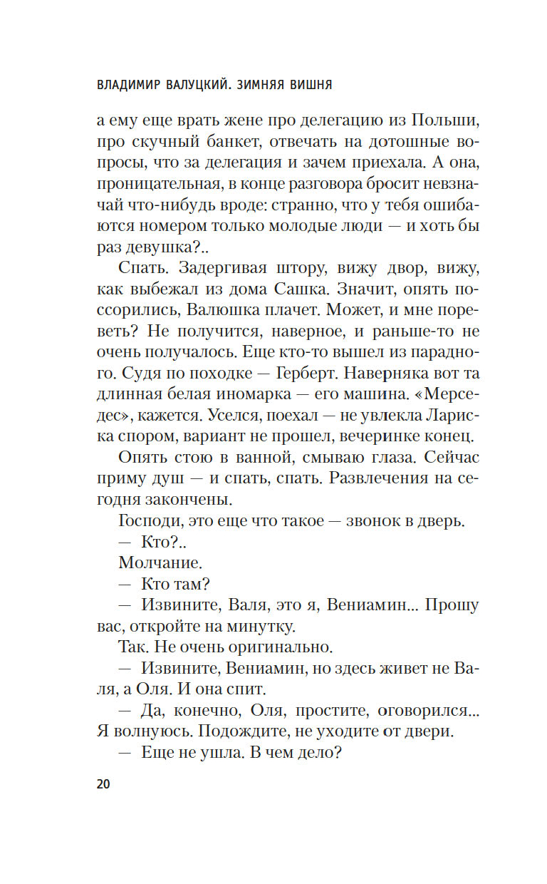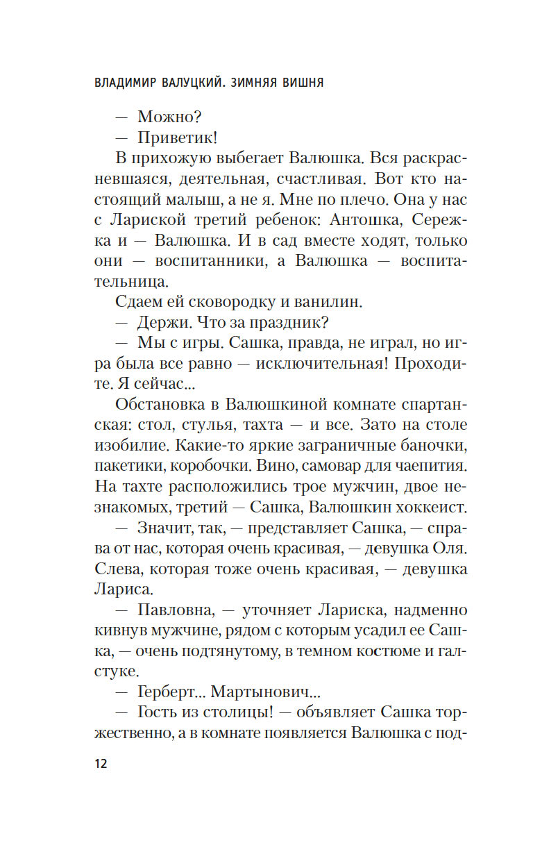 "Зимняя вишня" (1985) – одна из самых популярных мелодрам в российском кино. В основе знаменитого фильма, на который было продано 32 миллиона билетов, – одноименный роман. "Неторопливая проза" о любви обыкновенных людей, Вадима и Ольги, написана с неизменными для Валуцкого светлой грустью, мягким юмором и сочувствием к героям. "...Если два человека любят друг друга, если им вместе так хорошо, как и не придумать... Это же проще, чем дважды два, верно?" У Вадима есть семья, а Ольга не уверена в том, что роман с женатым мужчиной принесет ей счастье. Применимы ли правила "простой арифметики" к их истории?