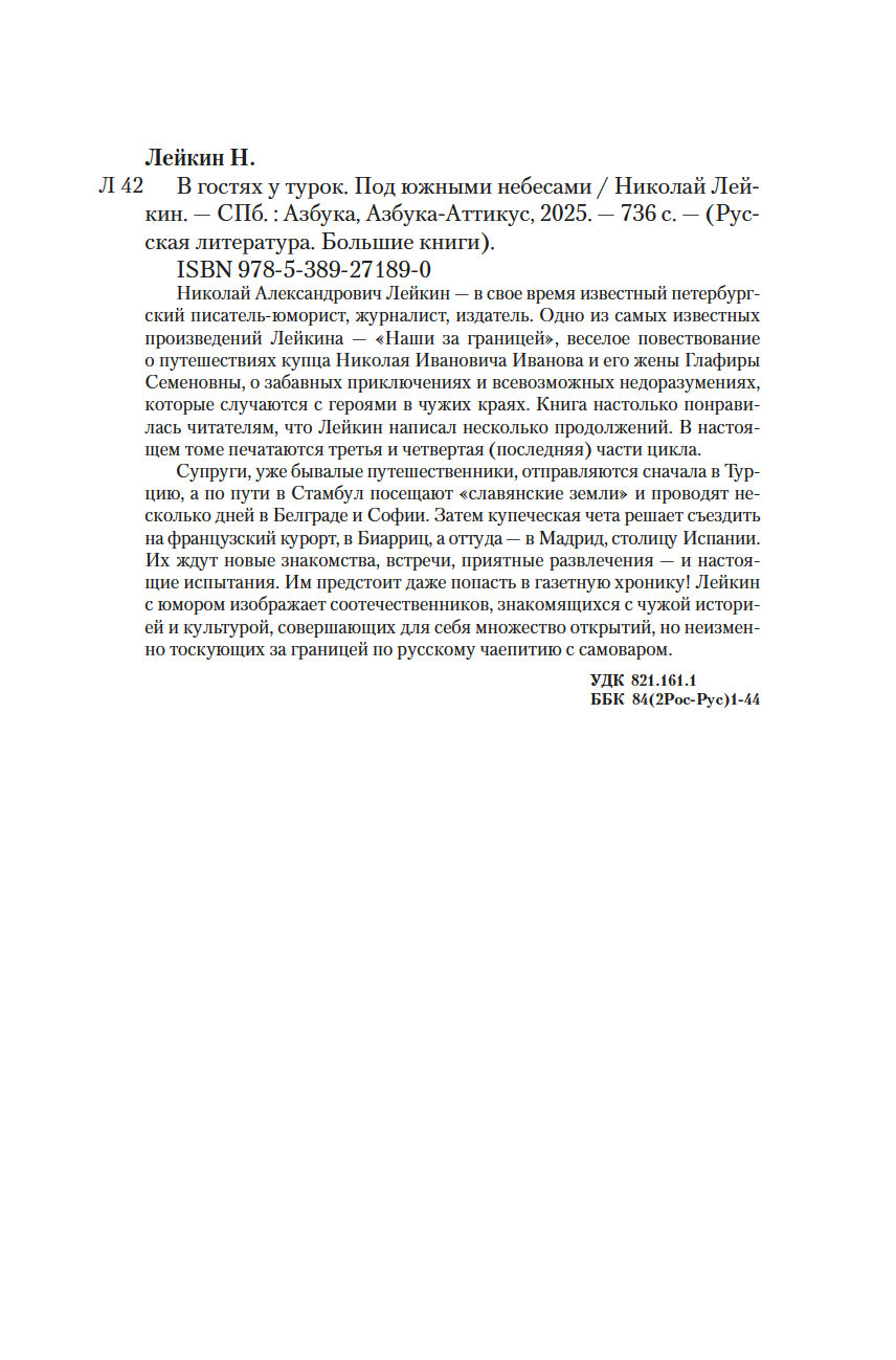 Николай Александрович Лейкин – в свое время известный петербургский писатель-юморист, журналист, издатель. Одно из самых известных произведений Лейкина – "Наши за границей", веселое повествование о путешествиях купца Николая Ивановича Иванова и его жены Глафиры Семеновны, о забавных приключениях и всевозможных недоразумениях, которые случаются с героями в чужих краях. Книга настолько понравилась читателям, что Лейкин написал несколько продолжений. В настоящем томе печатаются третья и четвертая (последняя) части цикла.