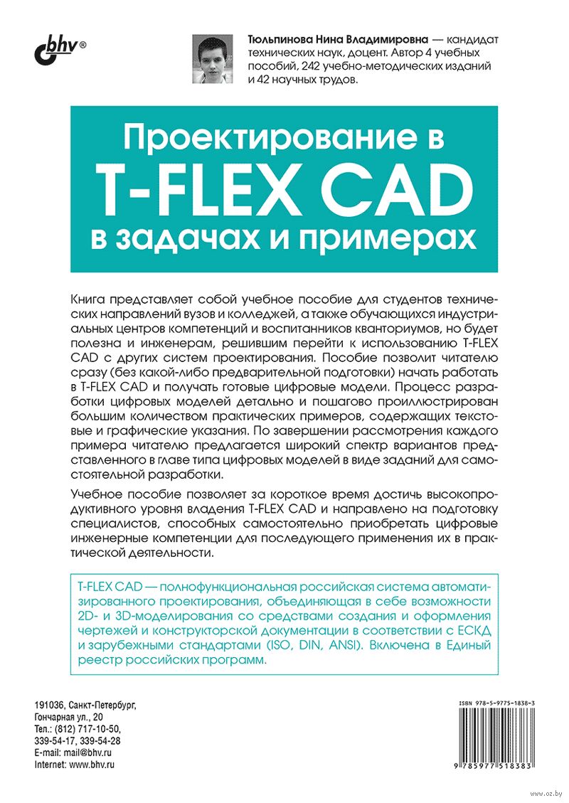 Книга представляет собой учебное пособие для студентов технических направлений вузов и колледжей, а также обучающихся индустриальных центров компетенций и воспитанников кванториумов, но будет полезна и инженерам, решившим перейти к использованию T-FLEX CAD с других систем проектирования. Первая часть книги посвящена двумерному цифровому моделированию в T-FLEX CAD и направлена на формирование уверенных практических навыков, необходимых для последующего перехода к 3D. Вторая часть посвящена трехмерному цифровому моделированию в T-FLEX CAD и направлена на формирование практических навыков 3D-проектирования цифровых моделей изделий машиностроения. После рассмотрения каждого примера построения чертежа, детали или сборки читателю предлагается широкий спектр вариантов представленного в главе типа цифровых моделей в виде заданий для самостоятельной разработки.