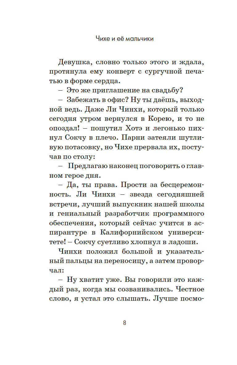 Первый день в новой школе – что можно успеть? Разбить чужой телефон? Запросто! Потерять деньги? Легко! Застрять в туалете? Как нечего делать! Да-да, всё это произошло с Чихе. Она только переехала в Сеул и собиралась вести тихую и незаметную жизнь, но судьба решила иначе: ей на пути встретились сразу три симпатичных парня. Ребят связала крепкая дружба, но как быть, если в их идеальные отношения вмешались любовь и ревность?