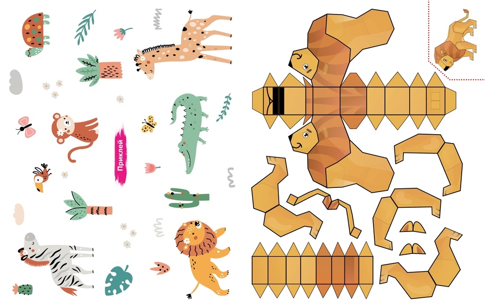 Перед вами уникальная книга для создания бумажных моделей тропических зверей и их уютного домика. Всё, что вам понадобится – это клей и ножницы!