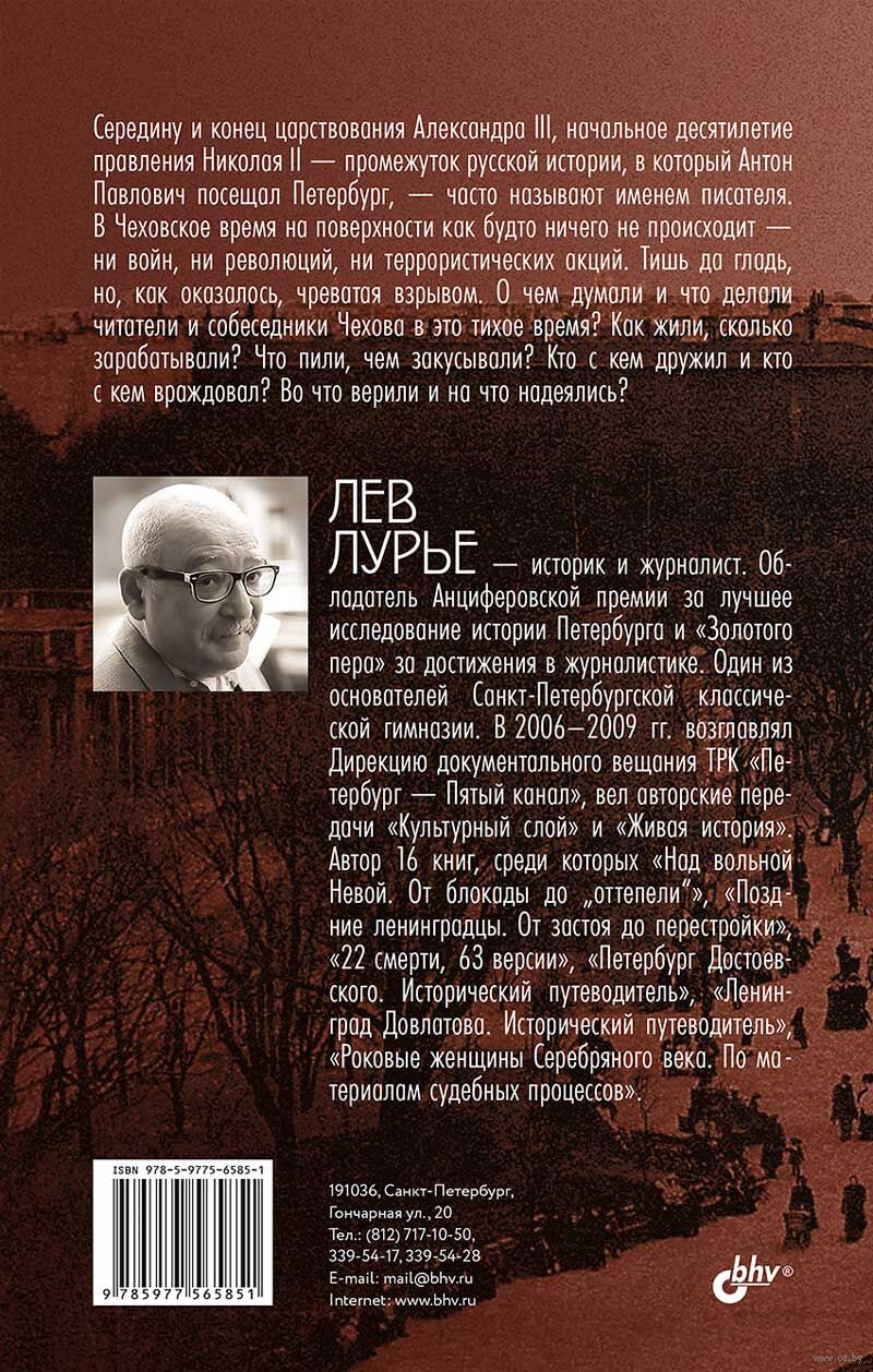 Путеводитель знакомит с Петербургом Чехова, где Антон Павлович бывал с 1885 по 1897 год. Помимо обзора культурной и общественно-политической жизни Российской столицы, читателю предлагаются три маршрута прогулок по местам, связанных с именем великого русского писателя: адреса его родных и друзей, любимые рестораны и театры, издательства и редакции журналов.