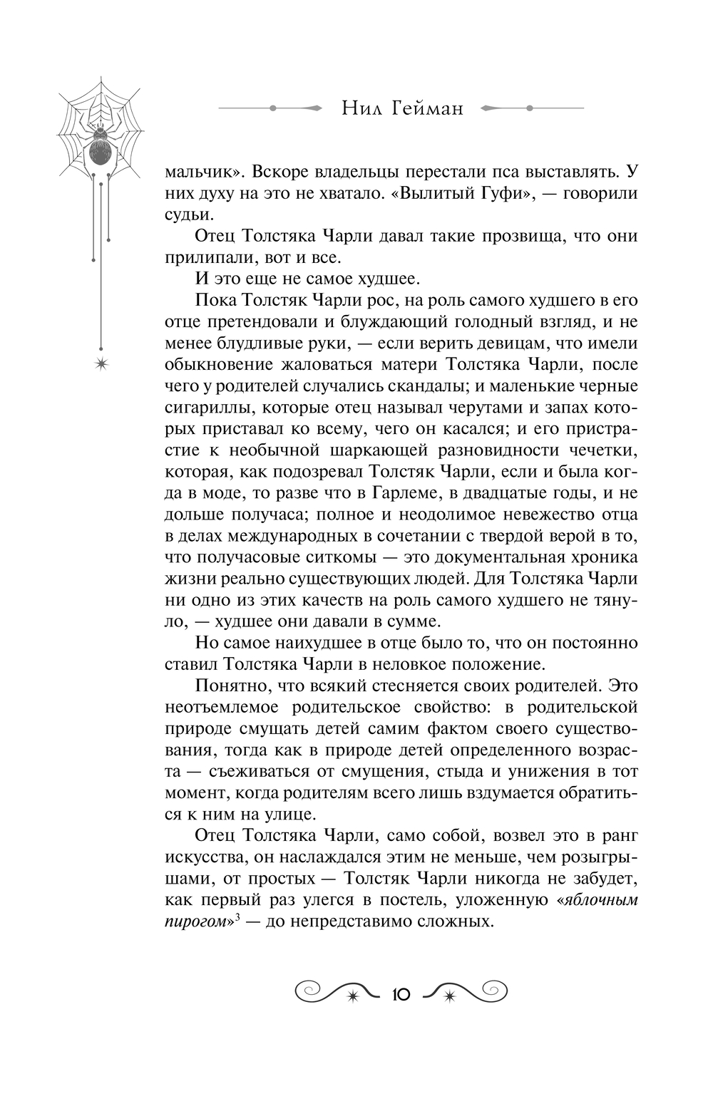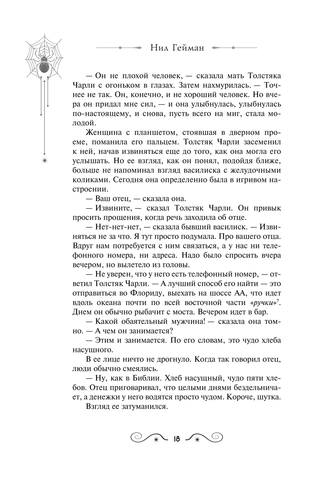 Толстяк Чарли Нанси, скромный, лишенный амбиций житель Лондона, ведет приготовления к свадьбе, когда узнает о смерти своего горе-папаши. Вечно ставивший Толстяка Чарли в неловкое положение, тот и умер словно в насмешку: флиртуя с девушками в караоке-баре. С этого момента жизнь Толстяка Чарли начинает рушиться. Чтобы вновь обрести себя, ему придется обратиться за помощью к ведьмам, отправиться на край света, потерять невесту и... спеть?