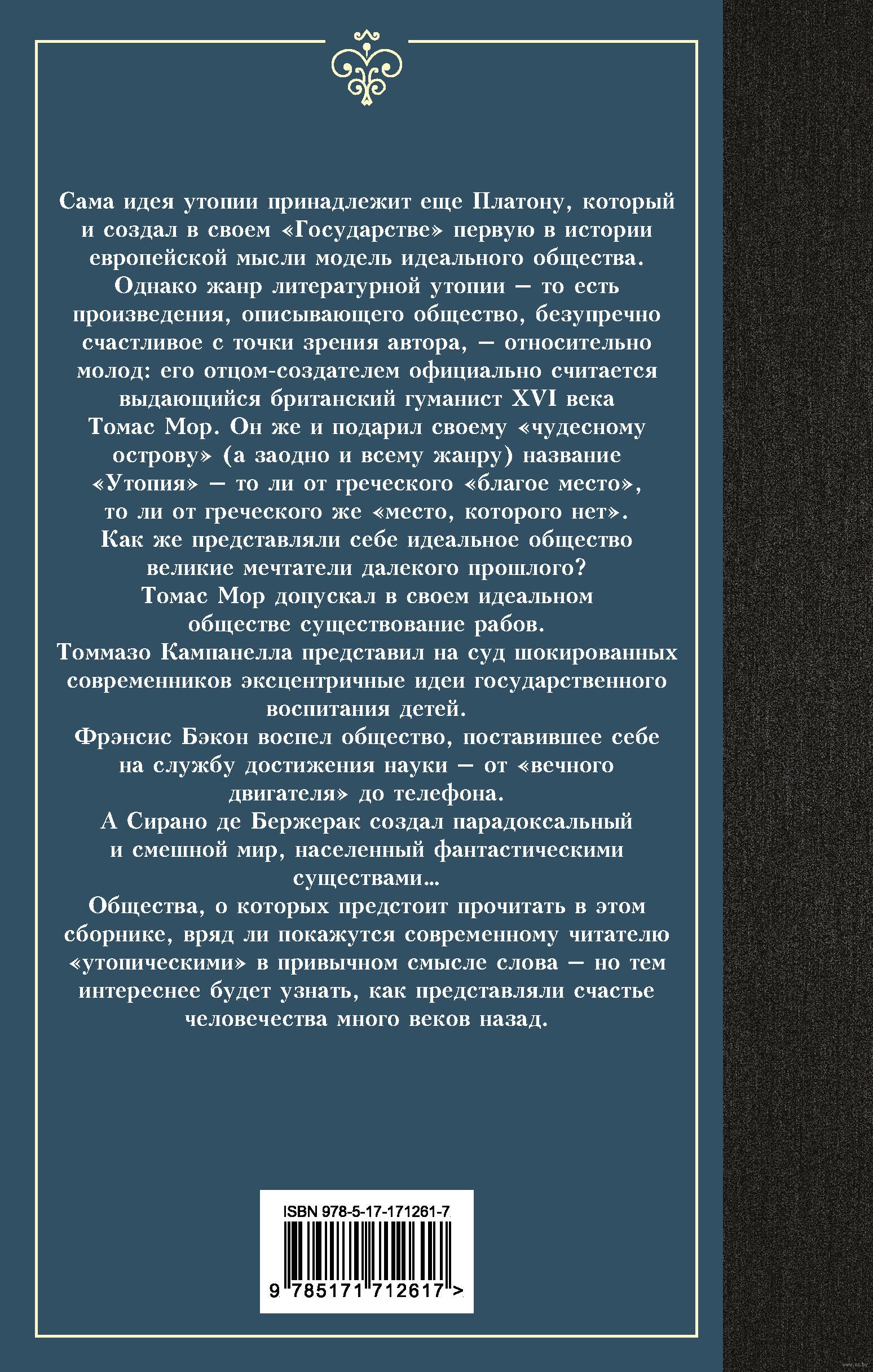Общества, о которых предстоит прочитать в этом сборнике, вряд ли покажутся современному читателю "утопическими" в привычном смысле слова – но тем интереснее будет узнать, как представляли счастье человечества много веков назад.
