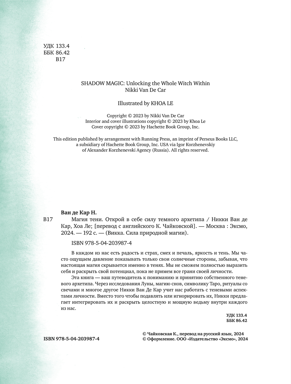 Эта книга – ваш путеводитель к пониманию и принятию собственного теневого архетипа. Через исследования Луны, магию снов, символику Таро, ритуалы со свечами и многое другое, Никки Ван Де Кар учит нас работать с теневыми аспектами личности. Вместо того чтобы подавлять или игнорировать их, Никки предлагает интегрировать их и раскрыть целостную и мощную ведьму внутри каждого из нас.