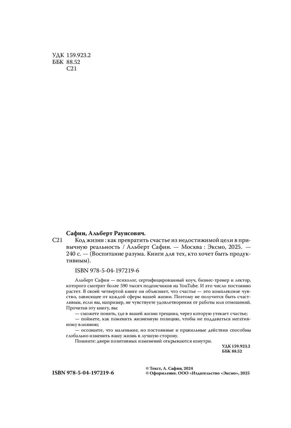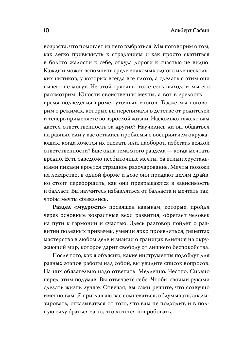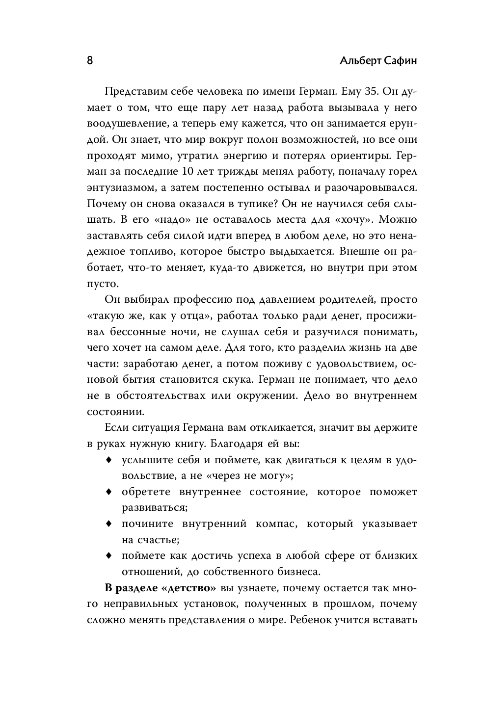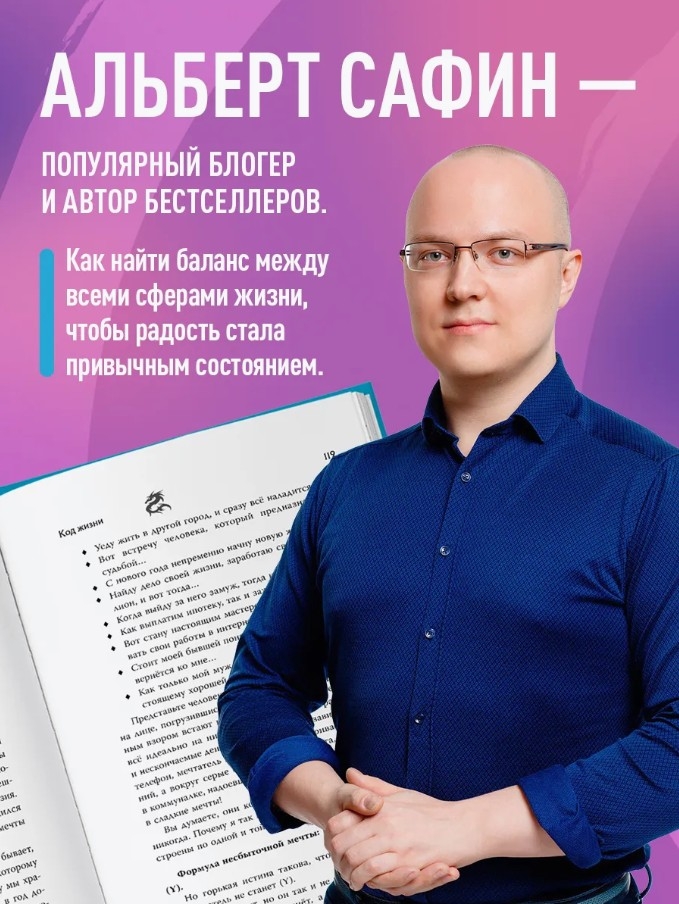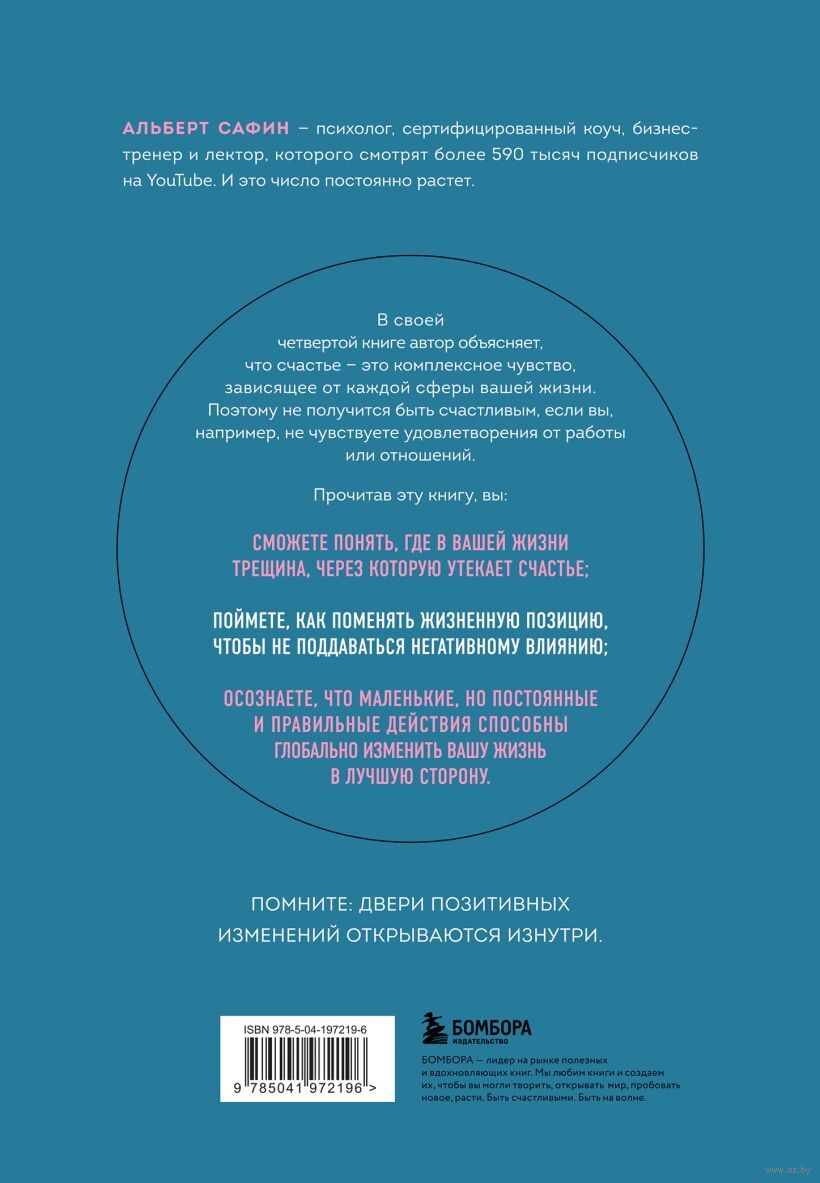 Альберт Сафин – психолог, сертифицированный коуч, бизнес-тренер и лектор, которого смотрят более 590 тысяч подписчиков на YouTube. И это число постоянно растет. В своей четвертой книге он объясняет, что счастье – это комплексное чувство, зависящее от каждой сферы вашей жизни. Поэтому не получится быть счастливым, если вы, например, не чувствуете удовлетворения от работы или отношений.