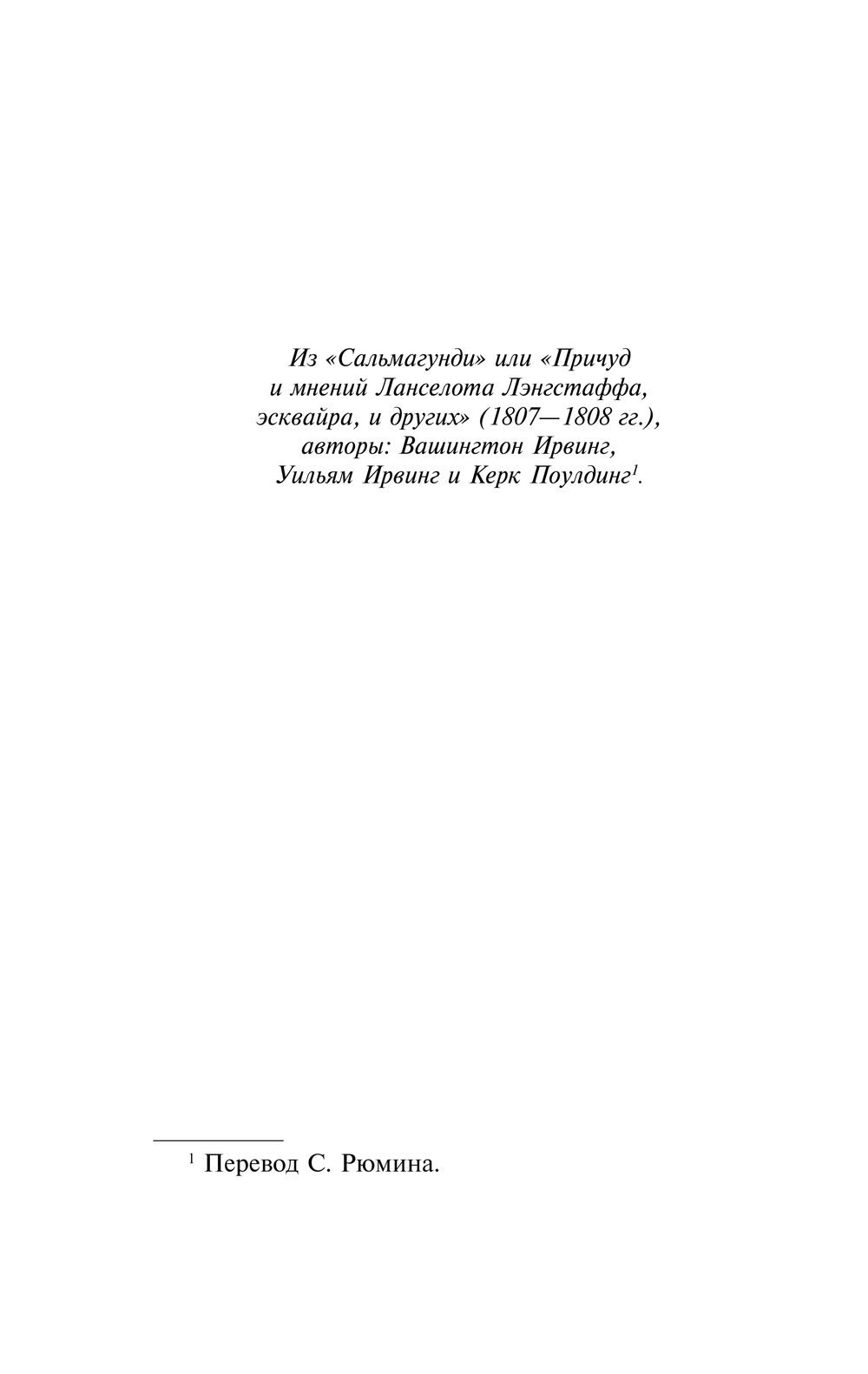 Имя Вашингтона Ирвинга ассоциируется прежде всего с "Легендой о Сонной Лощине" и ее культовой, горячо любимой несколькими поколениями ценителей мистики экранизацией. Однако у этого классика американской литературы есть еще множество мистических произведений – серьезных и иронических, – с которыми и познакомит читателей данный сборник.