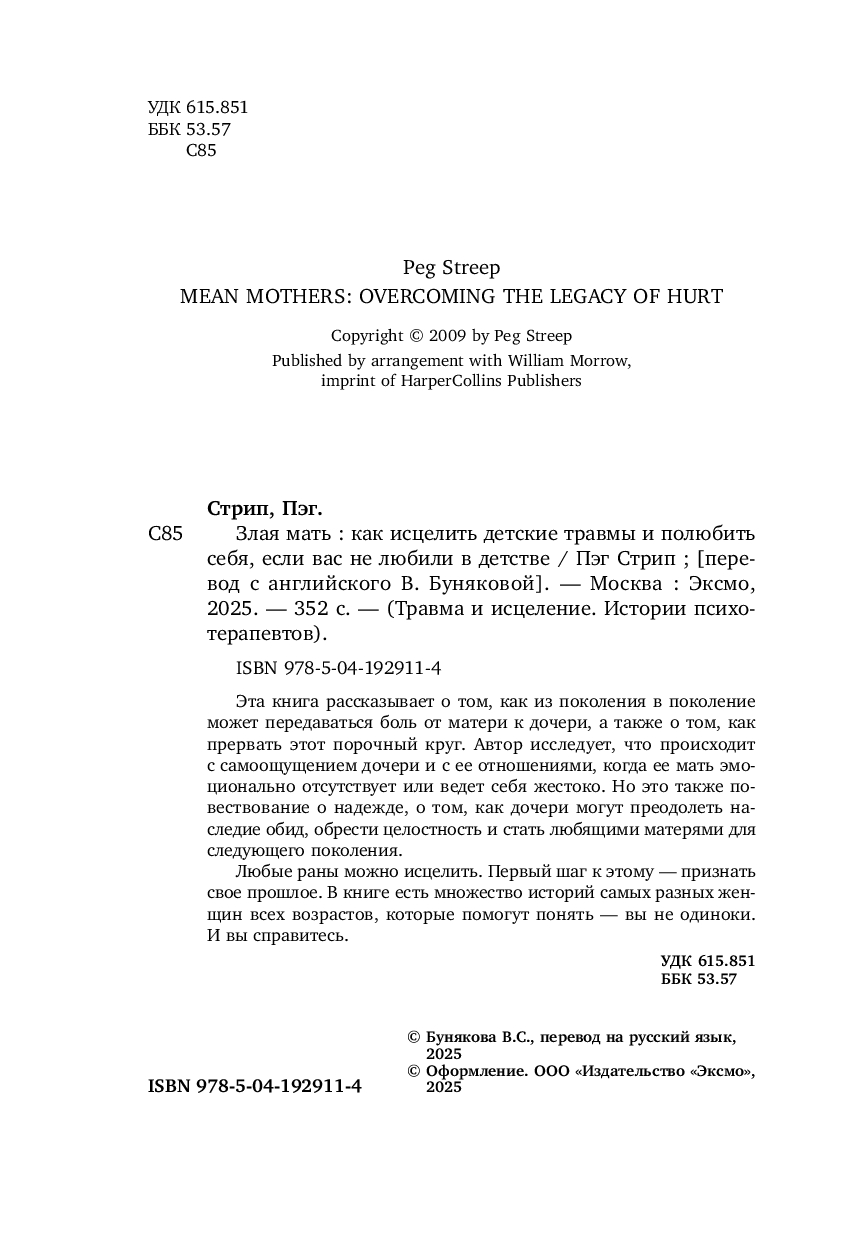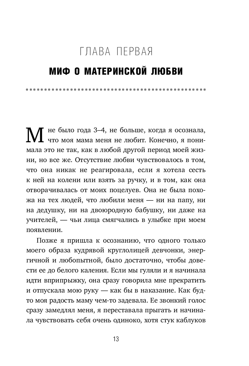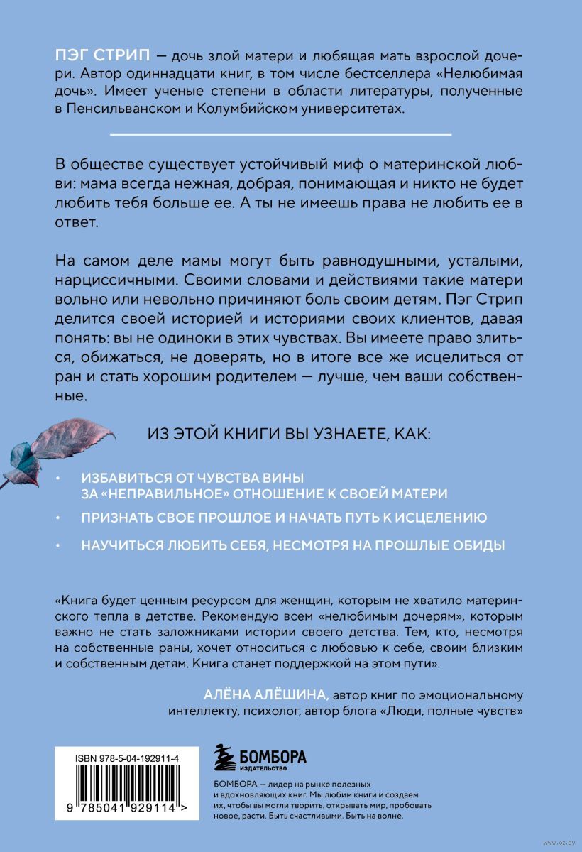 Эта книга рассказывает о том, как из поколения в поколение может передаваться боль от матери к дочери, а также о том, как прервать этот порочный круг. Автор исследует, что происходит с самоощущением дочери и с ее отношениями, когда ее мать эмоционально отсутствует или ведет себя жестоко. Но это также повествование о надежде, о том, как дочери могут преодолеть наследие обид, обрести целостность и стать любящими матерями для следующего поколения.