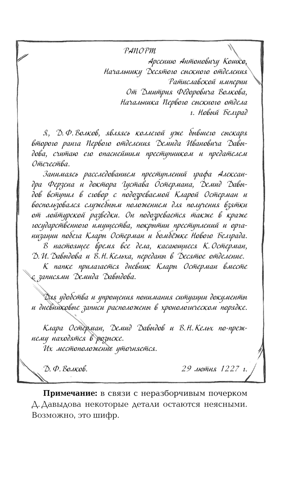 Перед вами дело преступницы и шпионки Клары Остерман. Главная улика против неё – личные дневники. В них Клара подробно описала отношения с загадочным вампиром и чудовищные эксперименты своего отца.
