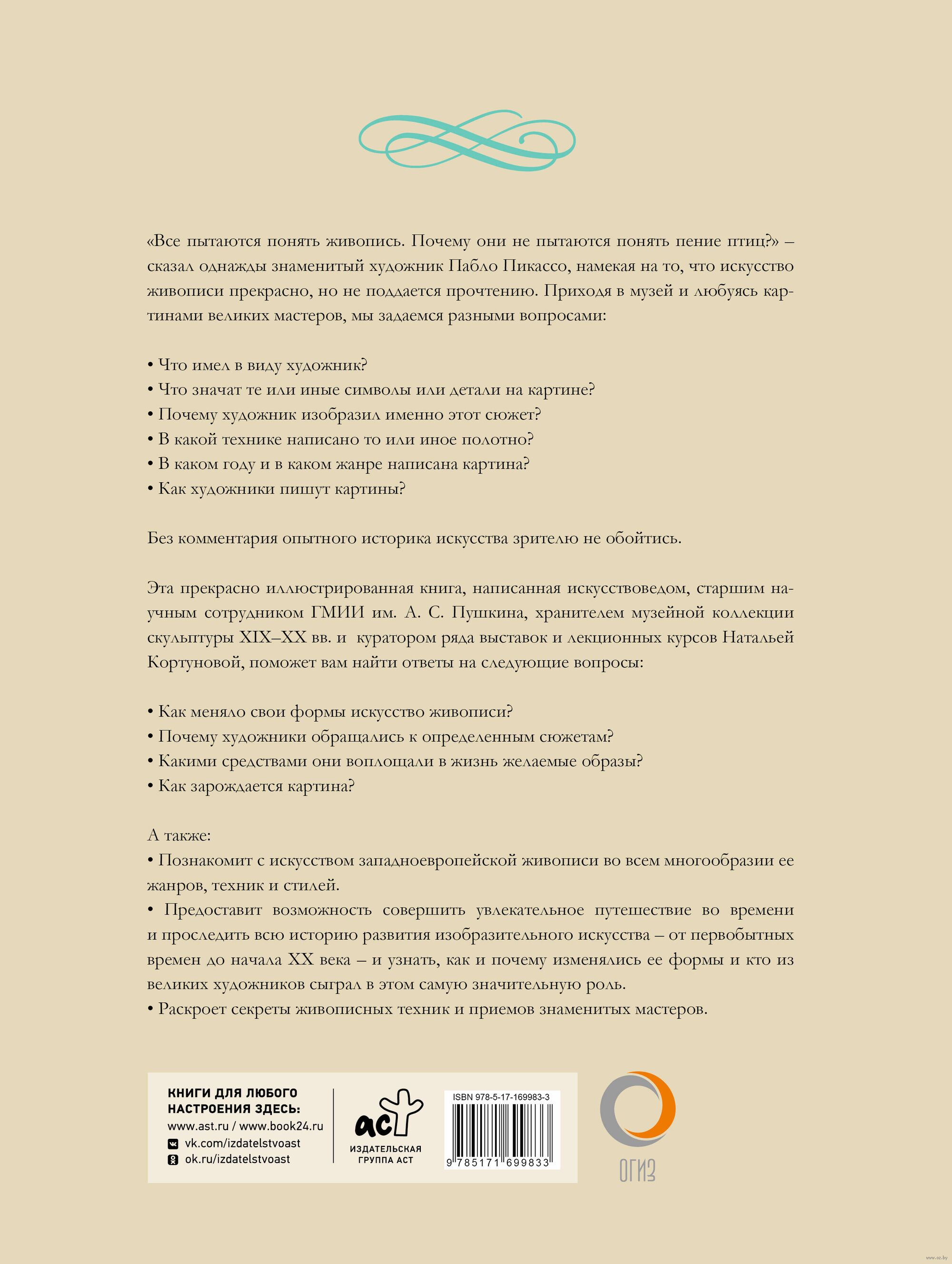 Эта прекрасно иллюстрированная книга, написанная искусствоведом, старшим научным сотрудником ГМИИ им. А. С. Пушкина, хранителем музейной коллекции скульптуры XIX-XX вв. и куратором ряда выставок и лекционных курсов Натальей Кортуновой, поможет вам найти ответы на следующие вопросы: