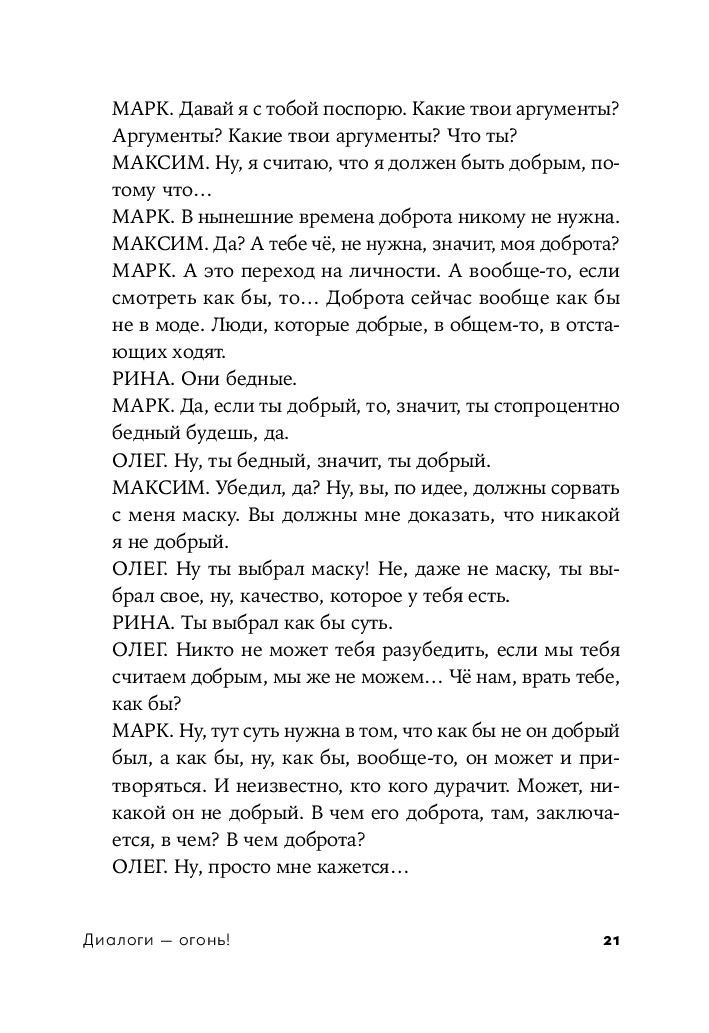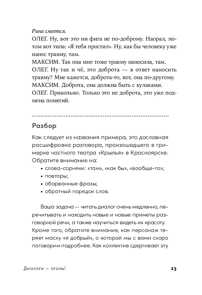 Какой диалог мы запомним? Живой, трогательный, острый, парадоксальный, глубокий, ироничный – тот, что приковывает наше внимание, цепляет за живое и рассыпается на мемы. Это ценный дар прозаиков, драматургов и сценаристов – уметь создавать такие диалоги и монологи, от которых невозможно оторваться. И мы как авторы можем этому научиться и сделать частью своего стиля.