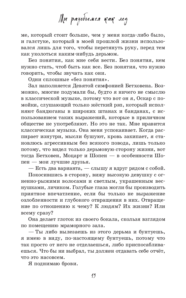 Единственный выход – выступать с партнёром. Им становится новенький в Аспене, Оскар. Парень, которого после одного провального вечера ей хотелось бы больше никогда не встречать. Тем не менее взгляд Оскара вызывает в ней бурю новых эмоций. И пусть всё в ней сопротивляется тому, чтобы открыться новому партнёру, Гвен решает воспользоваться последним шансом осуществить заветную мечту. Совместный полёт по льду требует страсти и безграничного доверия, но Гвен не только подозревает, что у Оскара тёмное прошлое. Хуже всего, что она больше не может доверять самой себе...