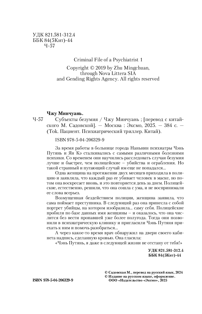 | Серия | Tok. Пациент. Психиатрический триллер. Китай |