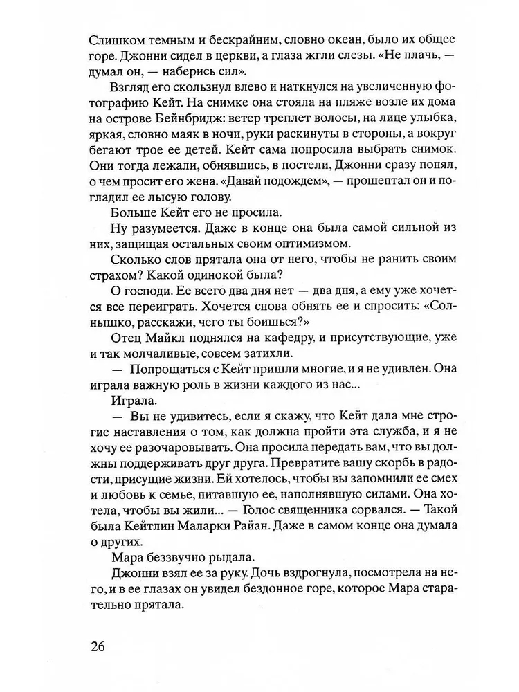 Идет время, но со смертью Кейт не могут примириться ни ее дочь, ни муж, ни лучшая подруга. Талли искренне пыталась выполнить данное обещание, однако, как бы она ни старалась, все у нее выходило не так. И вот после смерти Кейт минуло четыре года, на протяжении которых Талли не только заботилась о ее детях, она практически уничтожила собственную жизнь.