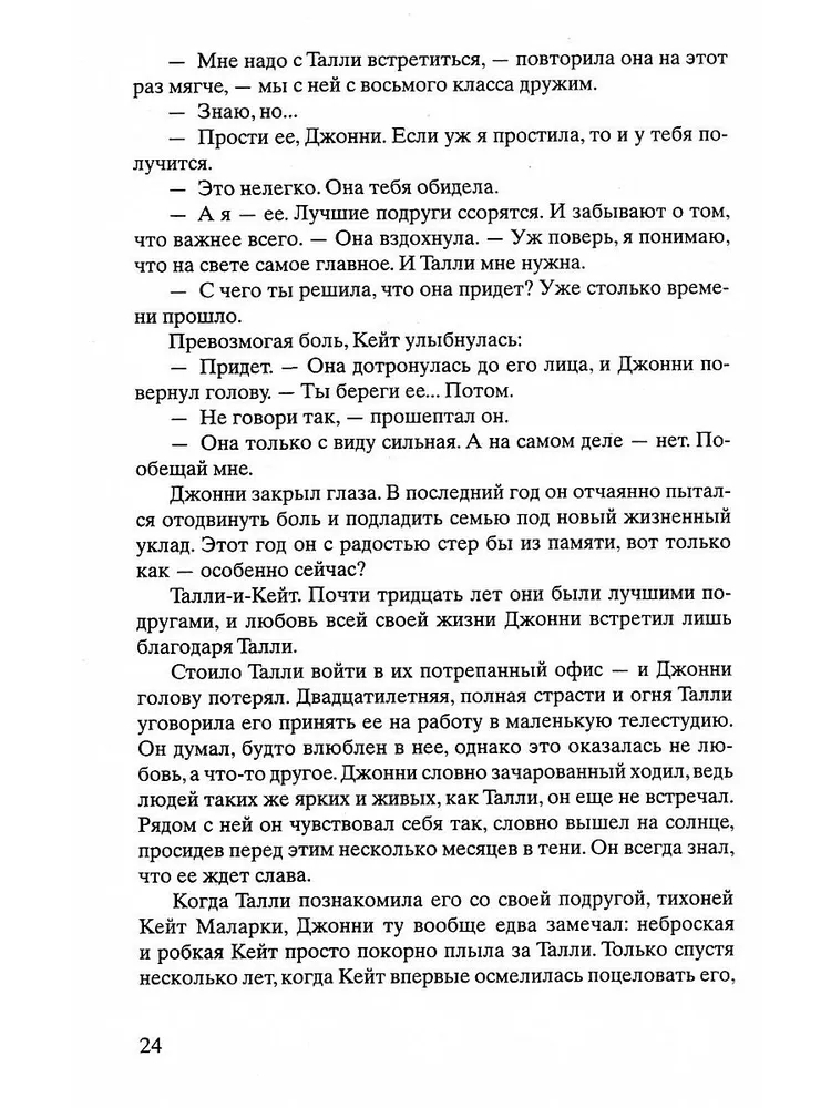 Пути Талли и Кейт расходились и снова сходились, они могли не общаться годами, но не забывали друг о друге ни на миг. И когда пришла настоящая беда, они снова были вместе. Но иной беде не в силах противостоять никакая дружба. Кейт не справилась с болезнью и, уходя, взяла с Талли обещание, что та позаботится о ее детях.