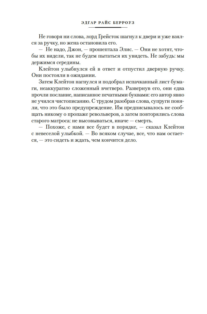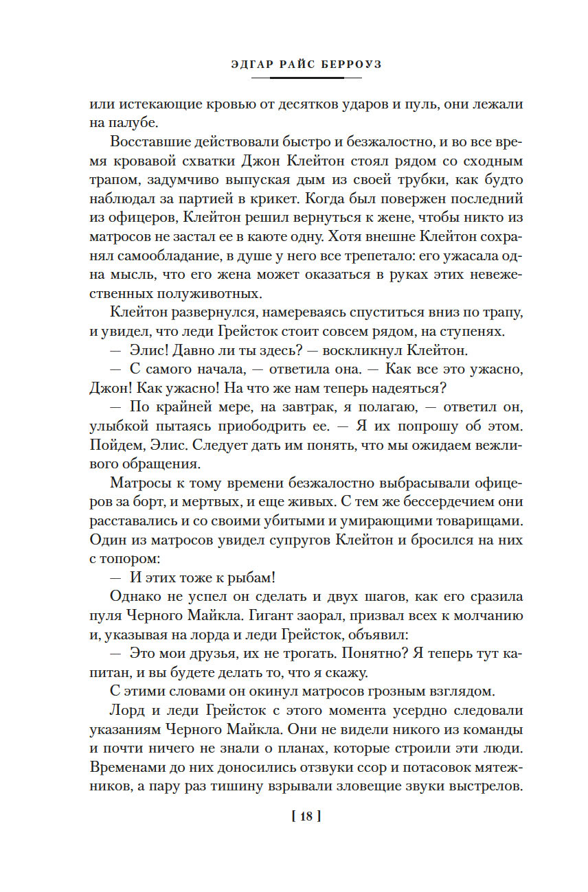 Джон Клейтон, лорд Грейсток, известный всему миру под именем Тарзан, – литературный персонаж, слава которого не утихает уже более века. С тех пор как в 1912 году увидел свет первый роман американского писателя Эдгара Берроуза, Тарзану – приемышу обезьян довелось совершить множество подвигов на ниве популярной культуры: многочисленные продолжения книг Берроуза, кино- и мультипликационные экранизации заставили миллионы любителей приключений выучить наречие племени больших человекообразных обезьян с затерянного в океане острова.