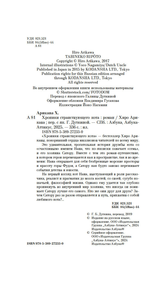 "Хроники странствующего кота" – бестселлер Хиро Арикавы, покоривший сердца миллионов читателей по всему миру.