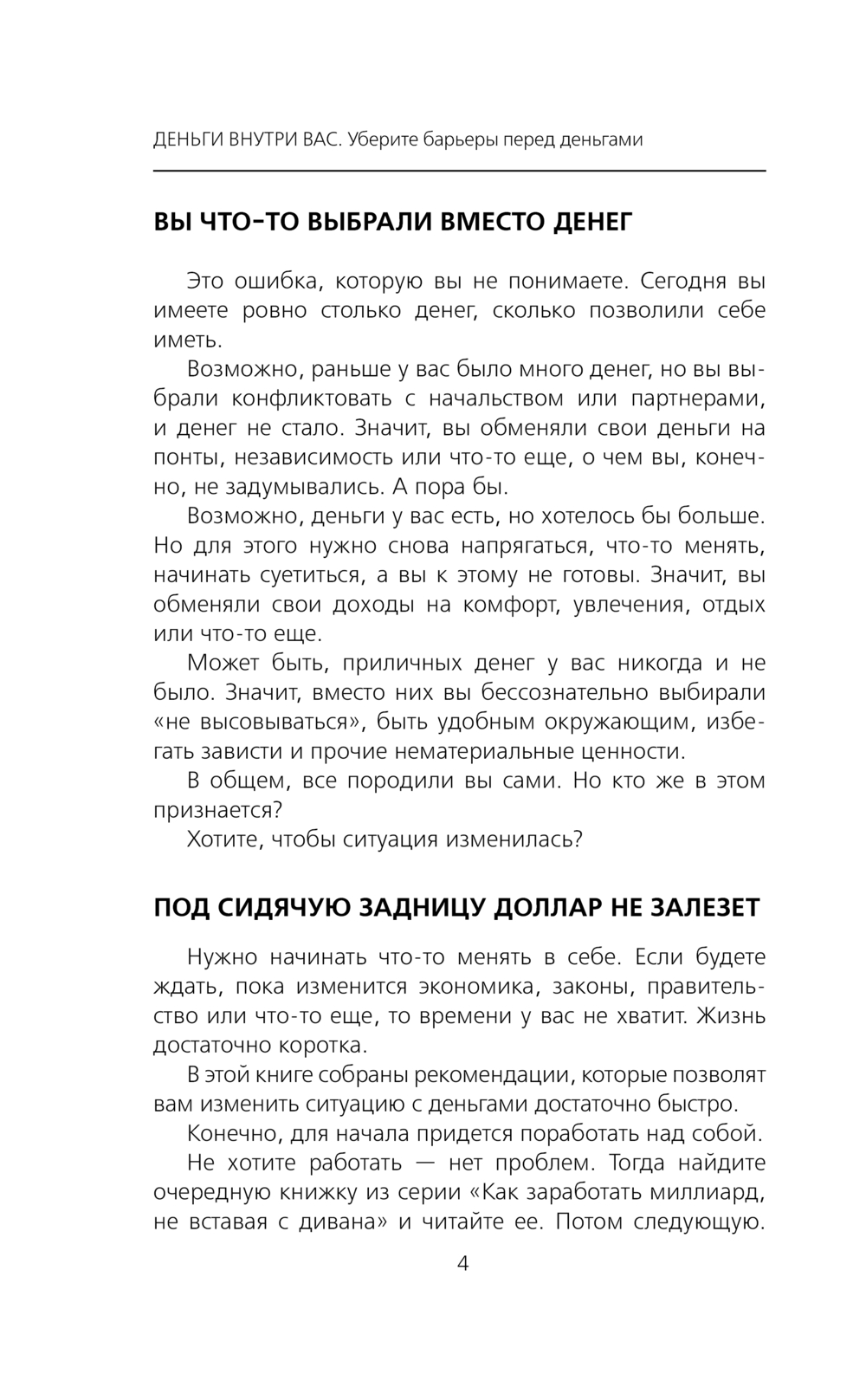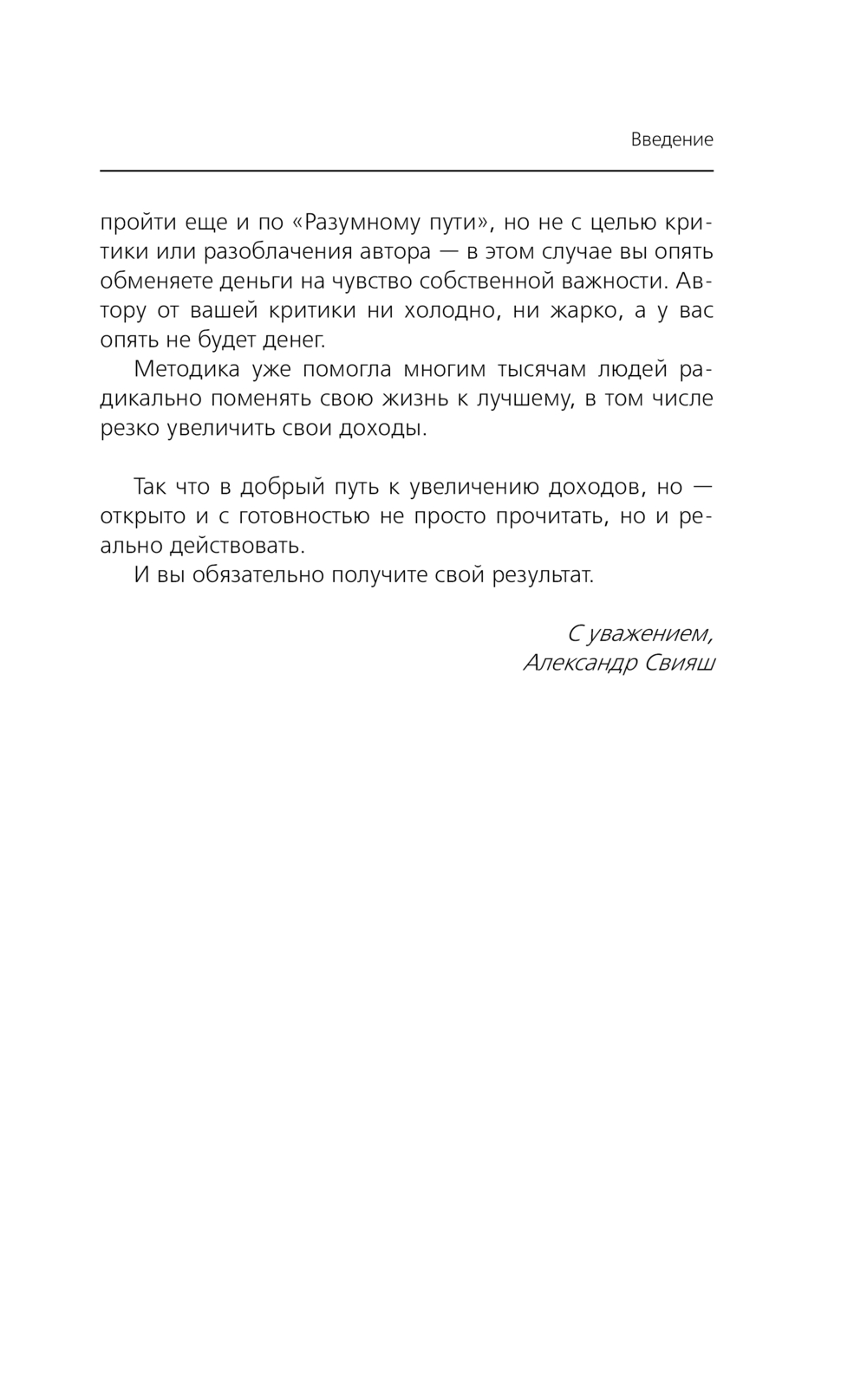 Это не значит, что вы сразу станете миллиардером, но гарантированно сможете увеличить в разы ваши нынешние доходы. Если вы, конечно, начнете что-то делать, а не только читать книгу.