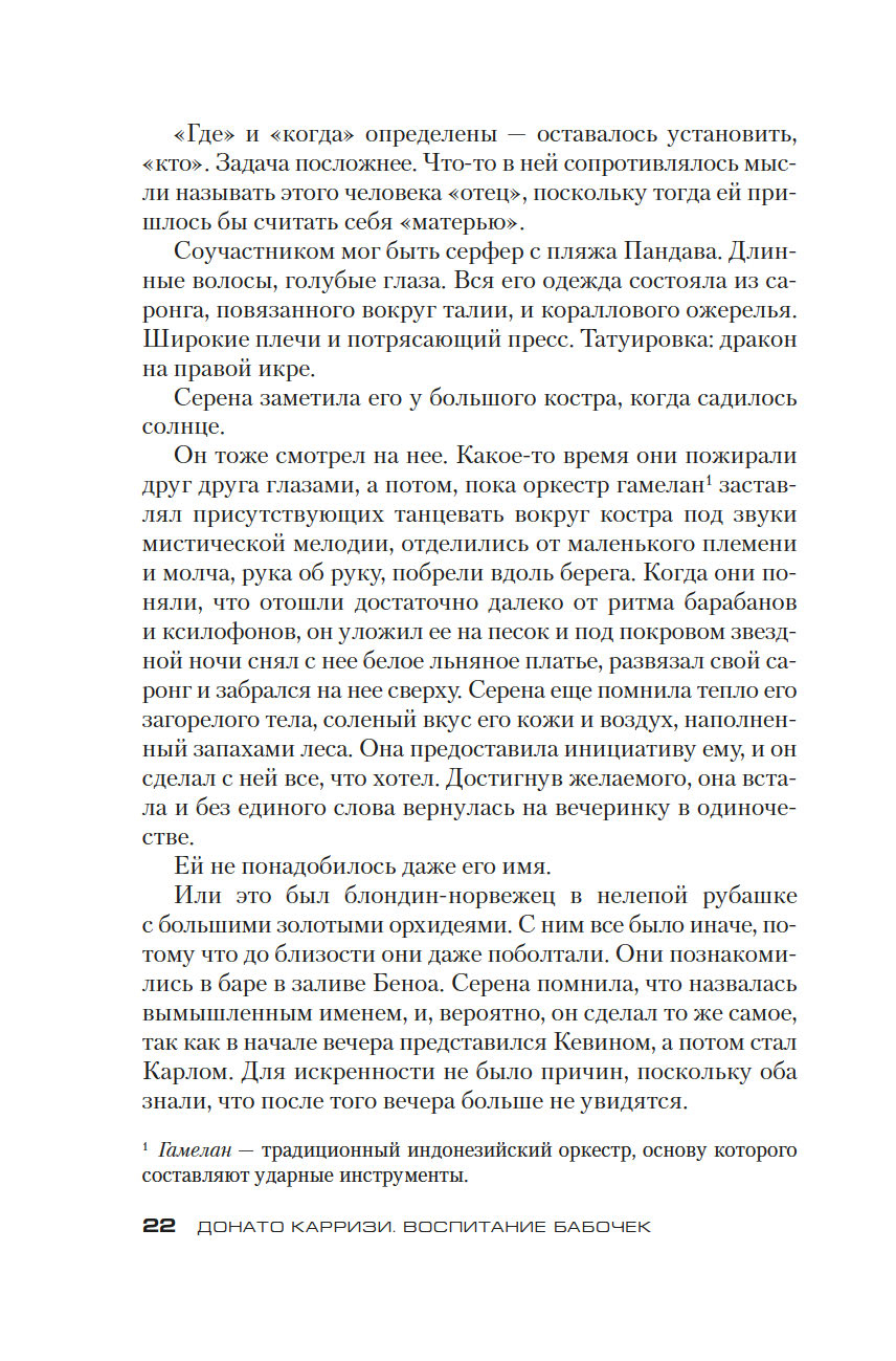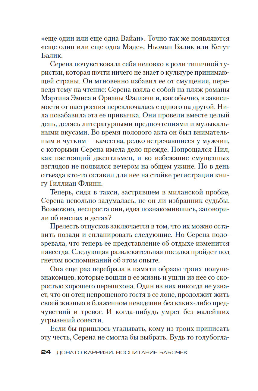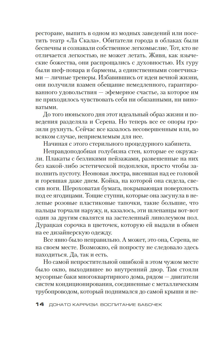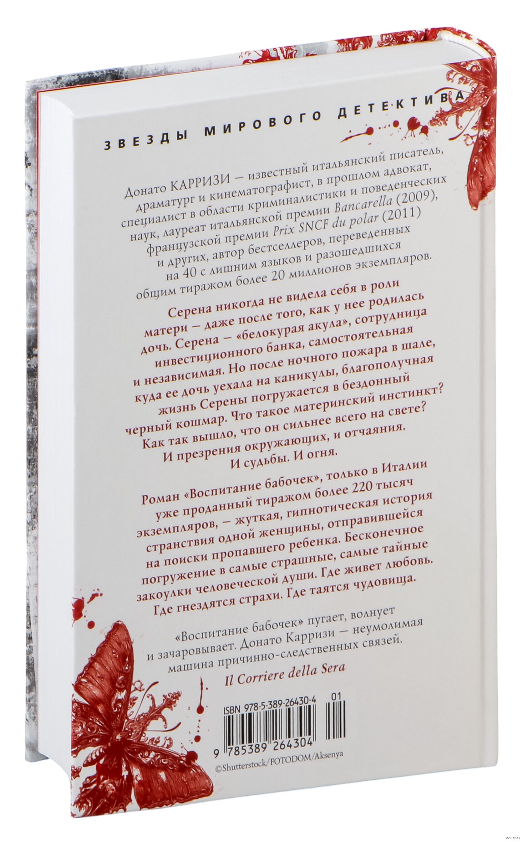 Донато Карризи – известный итальянский писатель, драматург и сценарист, в прошлом адвокат, специалист в области криминалистики и поведенческих наук, лауреат итальянской премии Bancarella (2009), французской премии Prix SNCF du polar (2011) и других, автор бестселлеров, переведенных на 40 с лишним языков и разошедшихся общим тиражом более 20 миллионов экземпляров. Его новый роман "Воспитание бабочек", только в Италии уже проданный тиражом более 220 тысяч экземпляров, – жуткая, гипнотическая история странствия одной женщины, отправившейся на поиски пропавшего ребенка. Бесконечное погружение в самые страшные, самые тайные закоулки человеческой души. Где живет любовь. Где гнездятся страхи. Где таятся чудовища.