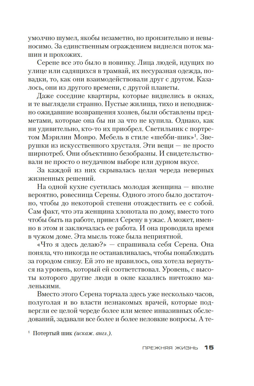 Серена никогда не видела себя в роли матери – даже после того, как у нее родилась дочь. Серена – "белокурая акула", талантливая сотрудница инвестиционного банка, самостоятельная, независимая, и никто ей не указ. Но после этого ночного пожара ее жизнь, упорядоченная и благополучная, постепенно погружается в бездонный черный кошмар. Что такое материнский инстинкт? Как так вышло, что он сильнее всего на свете? И презрения окружающих, и отчаяния. И судьбы. И огня.