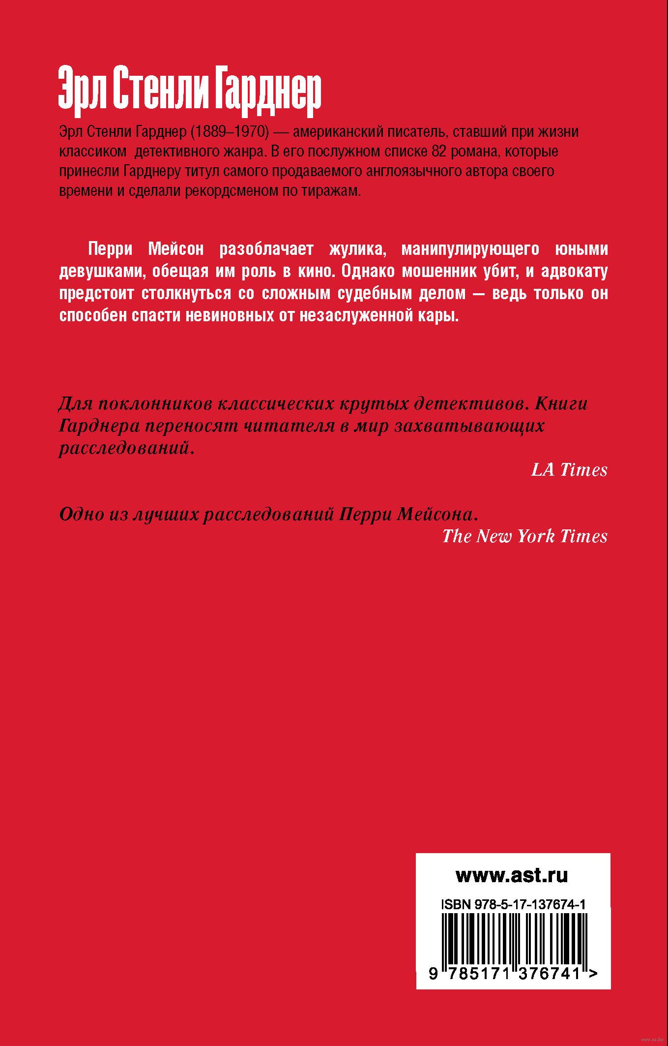 Перри Мейсон разоблачает жулика, манипулирующего юными девушками, обещая им роль в кино. Однако мошенник убит, и адвокату предстоит столкнуться со сложным судебным делом – ведь только он способен спасти невиновных от незаслуженной кары.