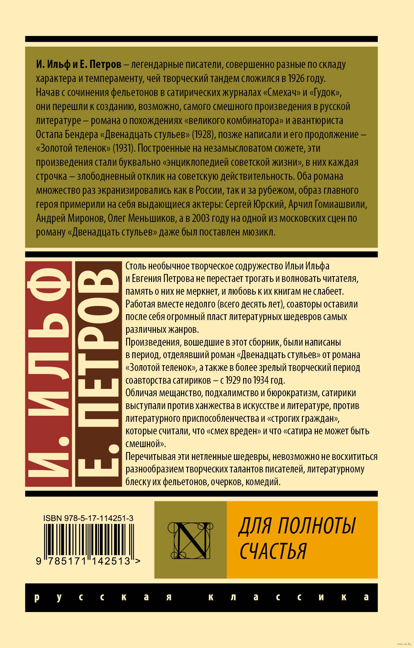 Столь необычное творческое содружество Ильи Ильфа и Евгения Петрова не перестает трогать и волновать читателя, память о них не меркнет, и любовь к их книгам не слабеет. Работая вместе недолго (всего десять лет), соавторы оставили после себя огромный пласт литературных шедевров самых различных жанров.