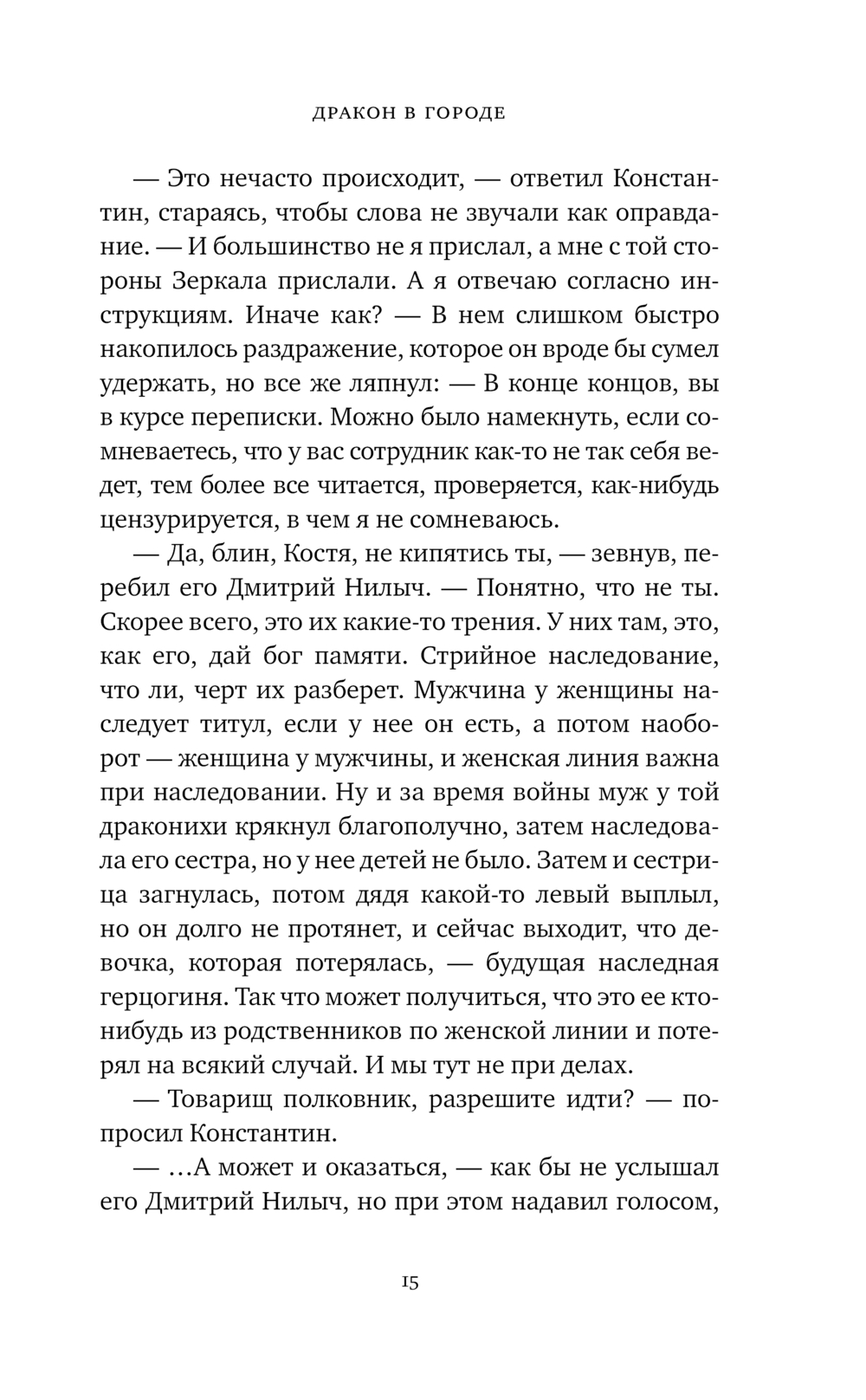 Константин Константинович Константинов скучает на бумажной работе в органах госбезопасности. Внезапно он получает важное задание: доставить драконью девочку Когнату в драконью империю. Константин не так-то прост: он ветеран боевых действий, но непроста и юная дракониха – она настоящая аристократка. Их встреча может изменить как мир людей, так и мир драконов – только об этом пока что никто не подозревает.