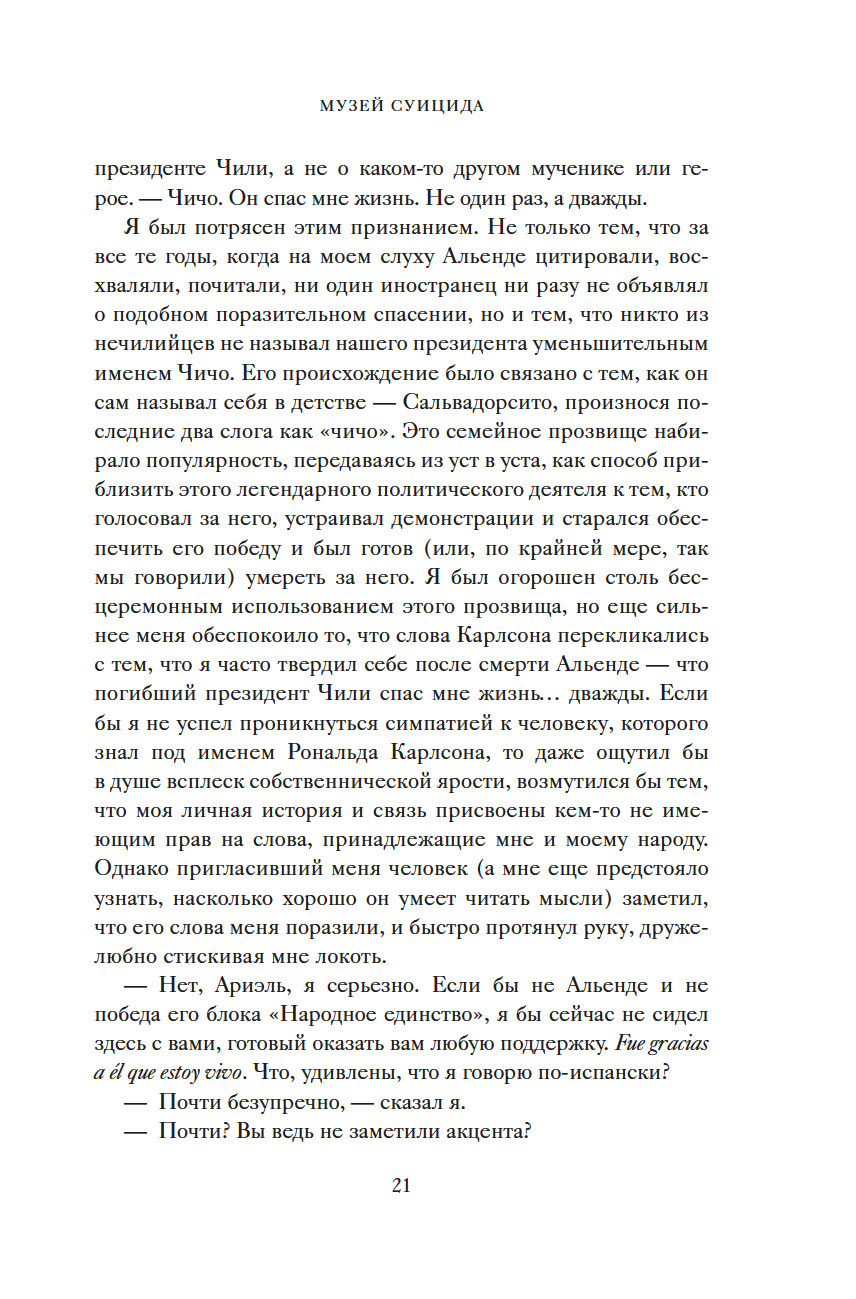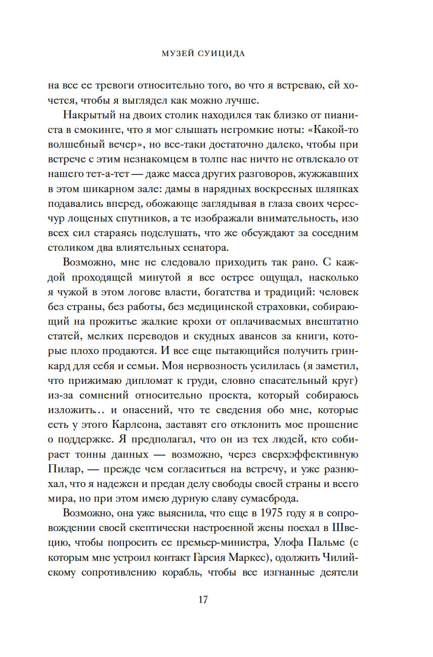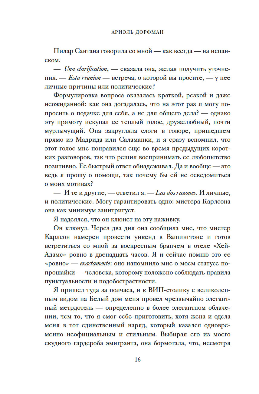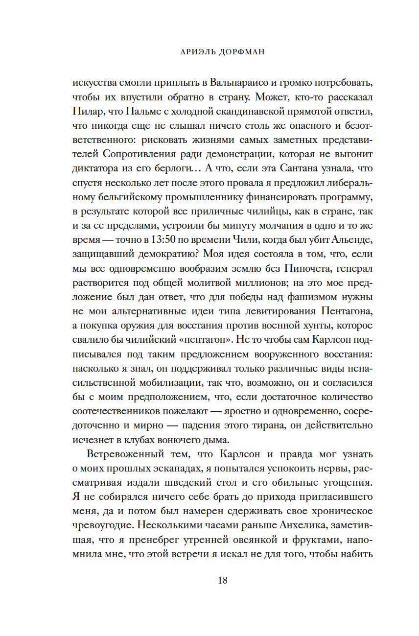 Писателю Ариэлю Дорфману нужны деньги. Деньги есть у миллиардера Джозефа Хорты. Он нанимает писателя, чтобы тот раскрыл правду о смерти Сальвадора Альенде. Преисполненные благодарности к покойному президенту Чили и настойчивой потребностью узнать, убийство или самоубийство оборвало его жизнь во время государственного переворота 1973 года, двое мужчин приступают к расследованию, которое приведет их из Вашингтона и Нью-Йорка в Сантьяго и Вальпараисо и, наконец, в Лондон. Они сталкиваются с незабываемыми персонажами: свадебным фотографом, который может предсказать будущее пары, готовящейся пожениться; полицейским, преследующим серийного убийцу, нападавшего на беженцев; революционером, пойманным при попытке покушения на диктатора; и, прежде всего, со сложными женщинами, которые поддерживают их на этом пути по личным неочевидным причинам. А еще они должны встретиться лицом к лицу с собственными тяжелыми историями, чтобы найти путь вперед – для себя и для нашей опустошенной планеты.