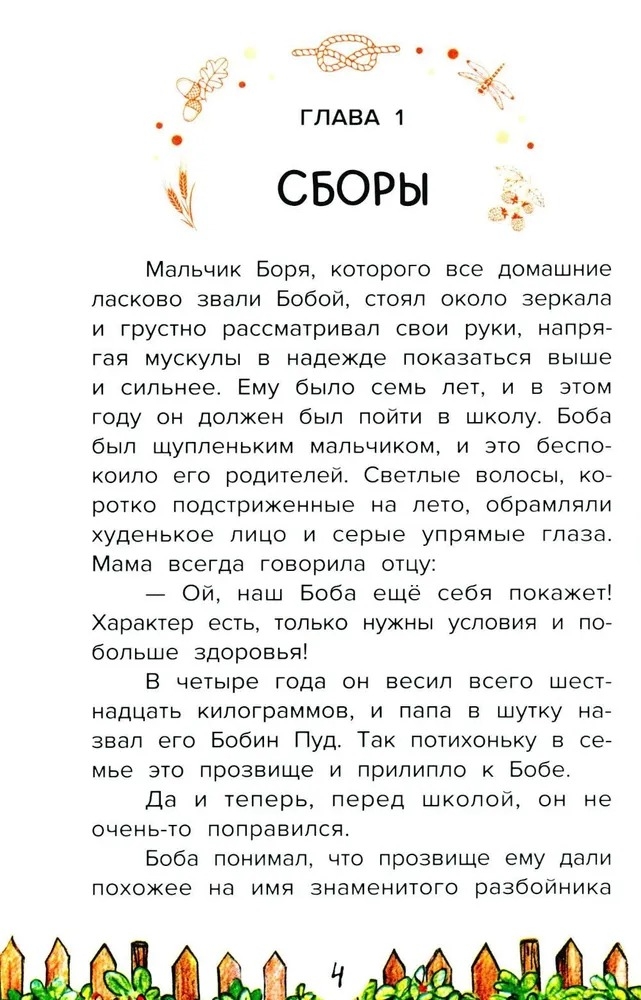 Эта повесть о городском мальчике по имени Боба, который отдыхает летом с бабушкой в селе Жерлицы, о его мечте – маленьком домике на дереве, о его друзьях и первых нравственных уроках.