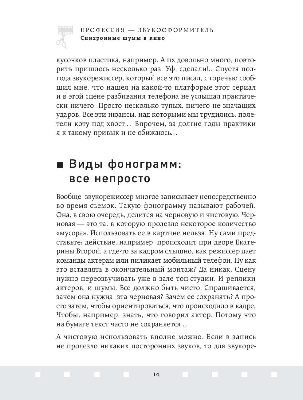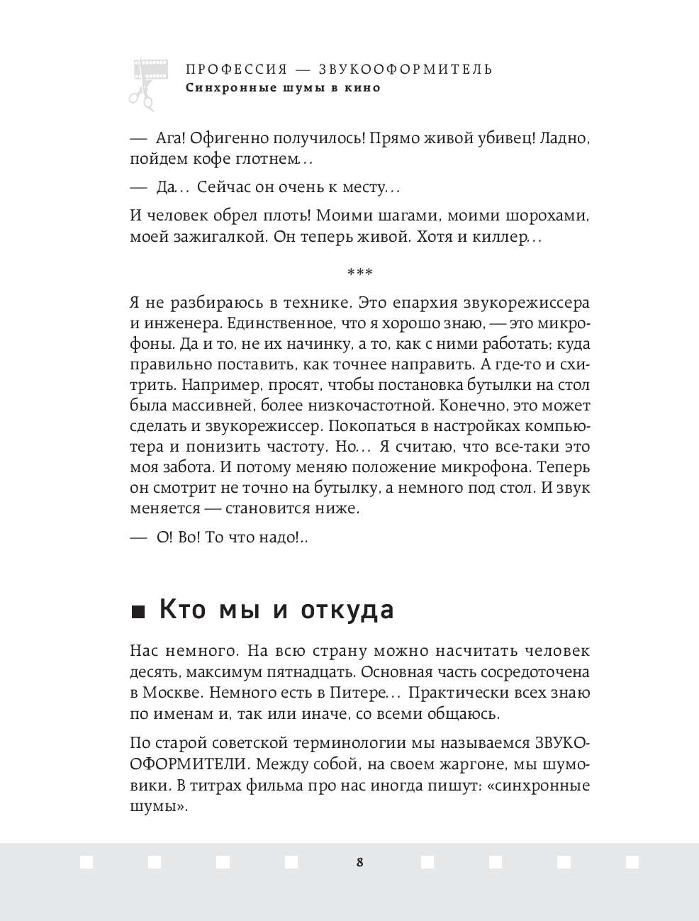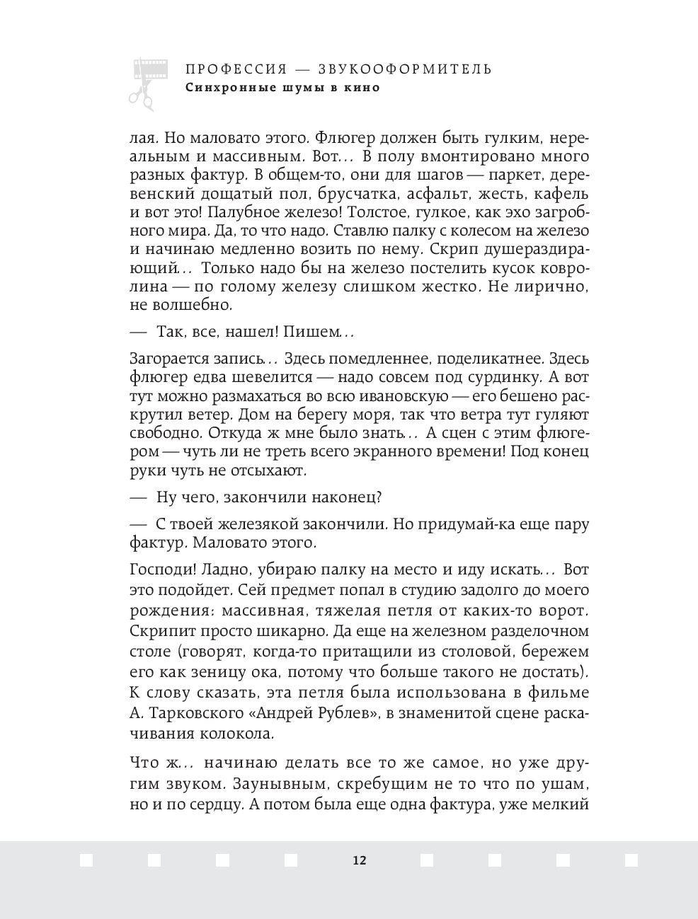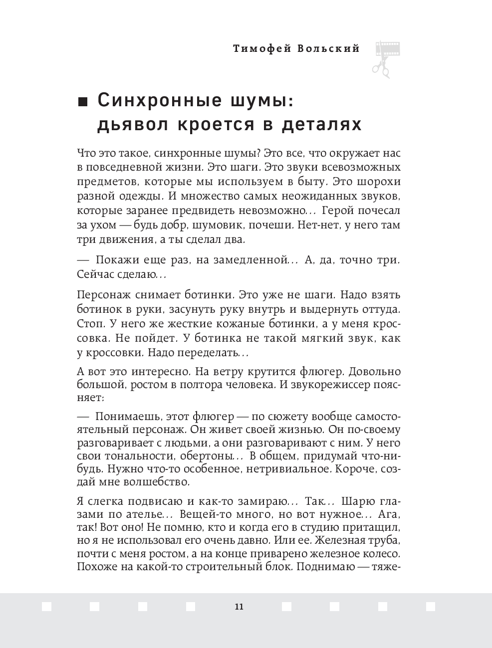 В этой увлекательной книге Тимофей Вольский, опытный шумовик студии звукозаписи "Тонстудии" Мосфильма, открывает завесу над одной из самых загадочных и творческих профессий в мире кино – звукооформителем. Читатели погружаются в закулисье кинопроизводства, где каждый звук, от шороха листьев до гудения машин, становится частью великого искусства.
