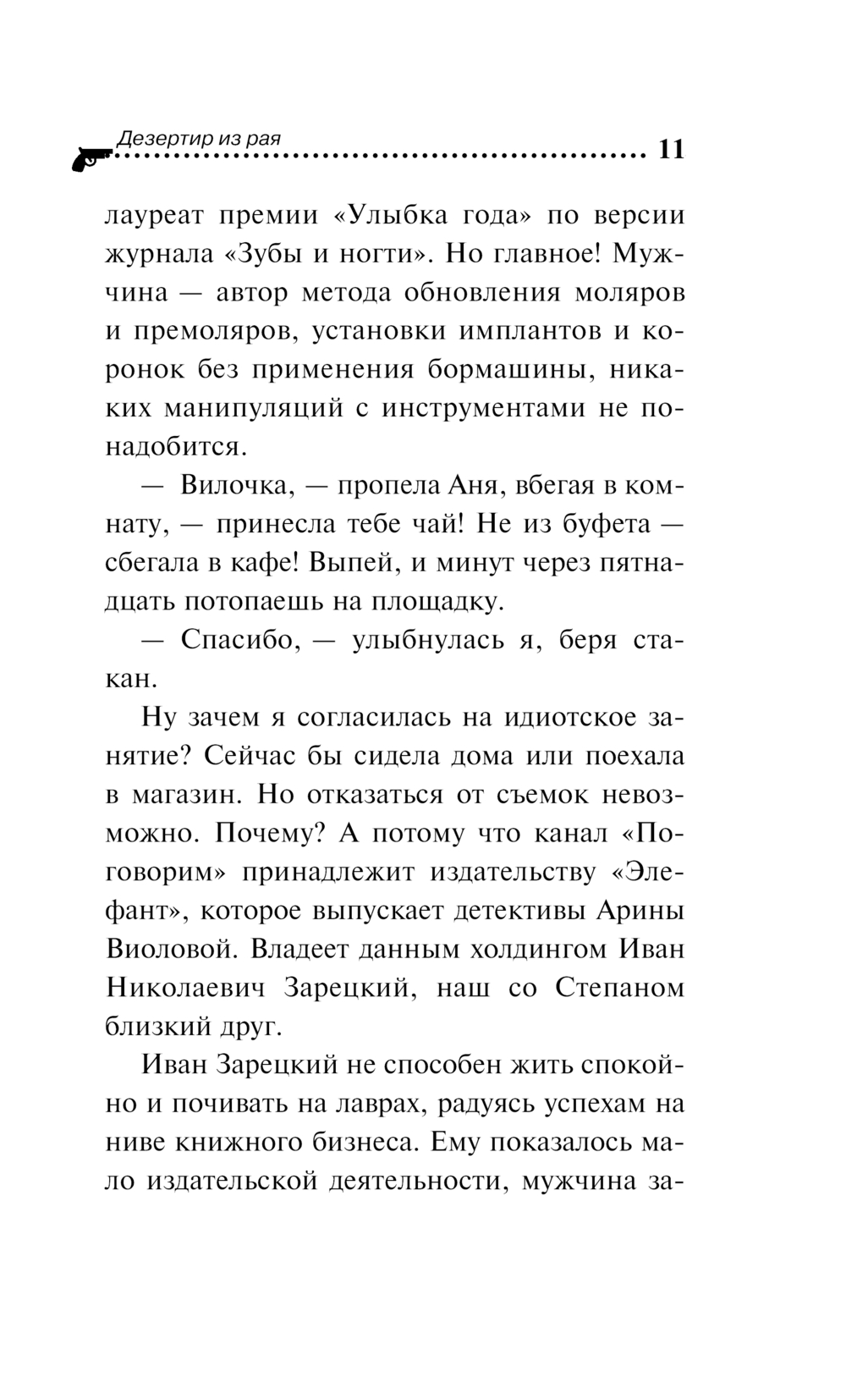 Богиня исполнения желаний наконец-то добралась до письма, которое Тараканова отправила ей много лет назад. Вилка получила то, о чем всегда мечтала – стала ведущей телевизионного шоу! Но нигде покоя нет. Прямо во время съемок в гримерную врывается женщина, падает на колени и молит новоиспеченную ведущую о помощи. Ее рассказ ввергает Вилку в величайшее изумление. Дама утверждает, что ее сына Игоря Морозова убил Иван Зарецкий, владелец издательства, где Вилка выпускает книги под псевдонимом Арина Виолова. И к тому же Иван является братом Игоря. "Убил его, как Каин Авеля!" – блажит посетительница. Ну это уже ни в какие ворота не лезет. Нет у Зарецкого никакого брата Игоря, и не было никогда. Пришлось Таракановой разбираться, откуда взялась эта чокнутая тетка и ее фантазии. В конце концов Виола с командой раскопали такое, чему уже и сама заказчица была совсем не рада...