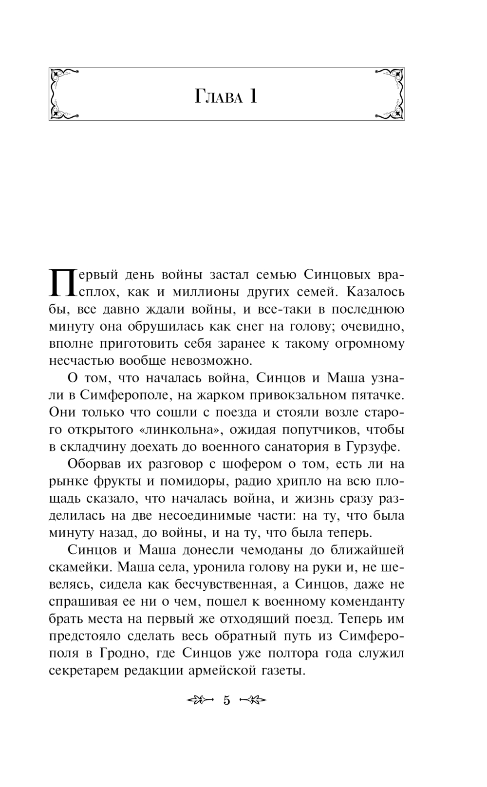 Первая книга захватывает период от начала Великой Отечественной войны до начала контрнаступления под Москвой. Военный корреспондент Иван Синцов попадает на фронт и оказывается в окружении вместе с полком генерала Федора Серпилина.