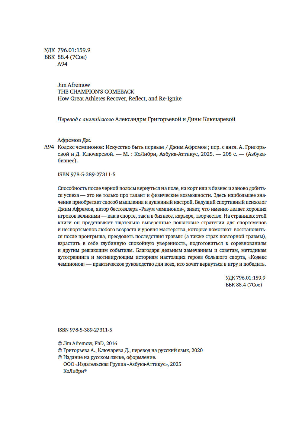 | Название в оригинале | The Champion's Comeback: How Great Athletes Recover, Reflect, and Reignite |