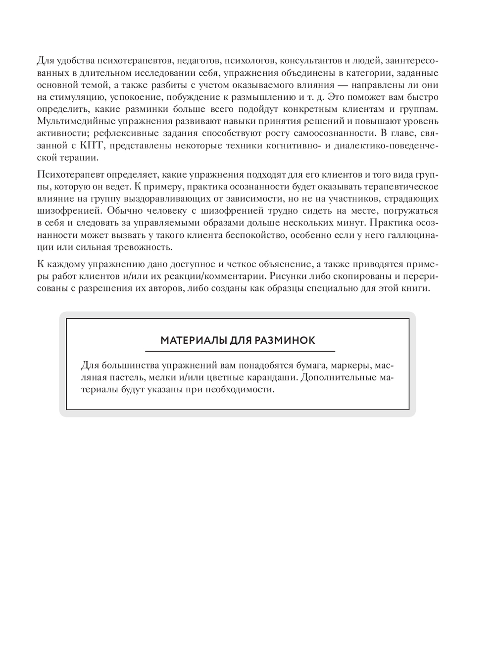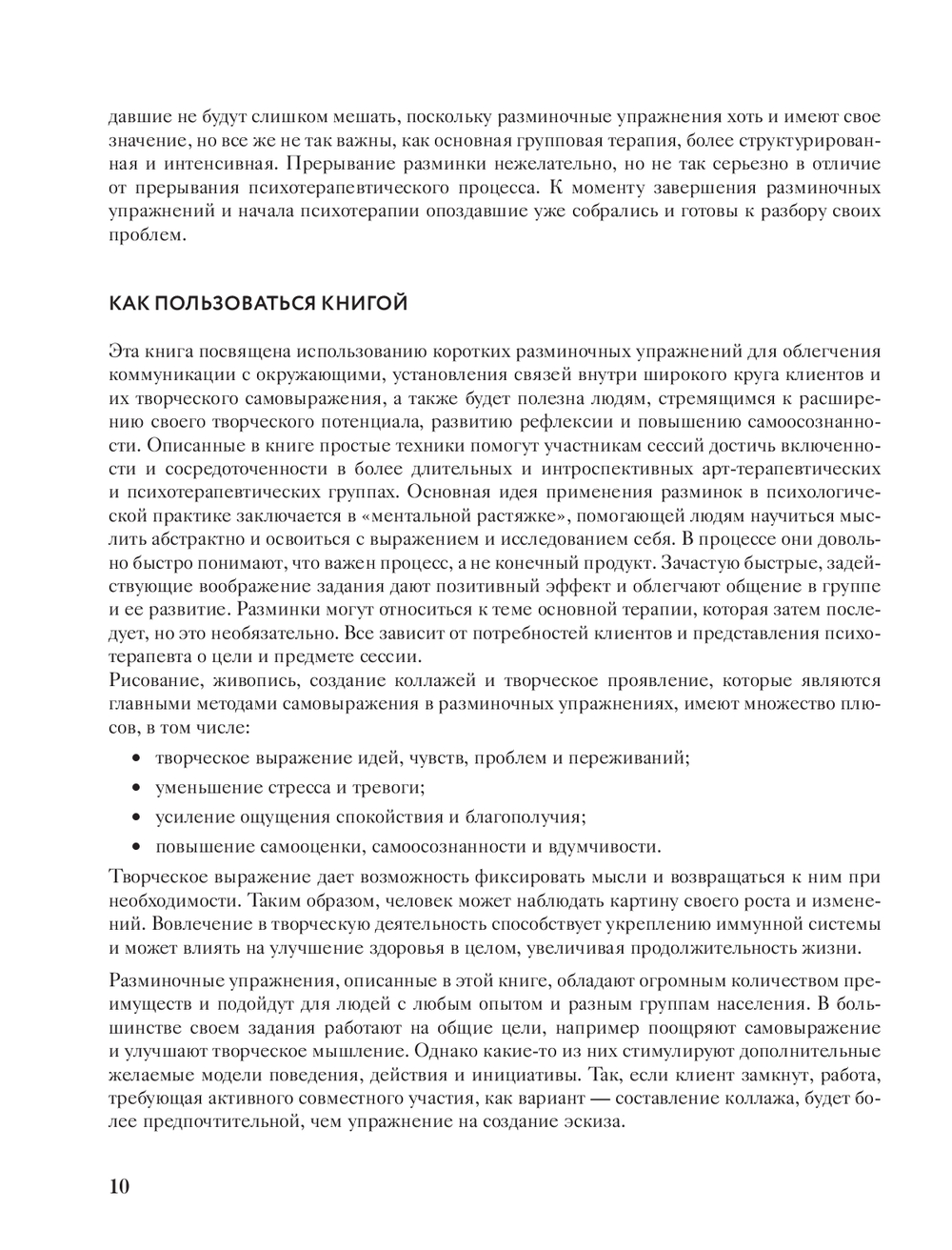 Эта книга для практикующих и начинающих психологов, арт-терапевтов и людей, желающих ближе познакомиться с собой. Короткие упражнения-пятиминутки легко ввести в практику терапевтов в начале сессии или групповой терапии, вам понадобятся карандаши, маркеры, бумага. Этого достаточно, чтобы выйти из ощущения неопределенности и погрузиться в самонаблюдение.