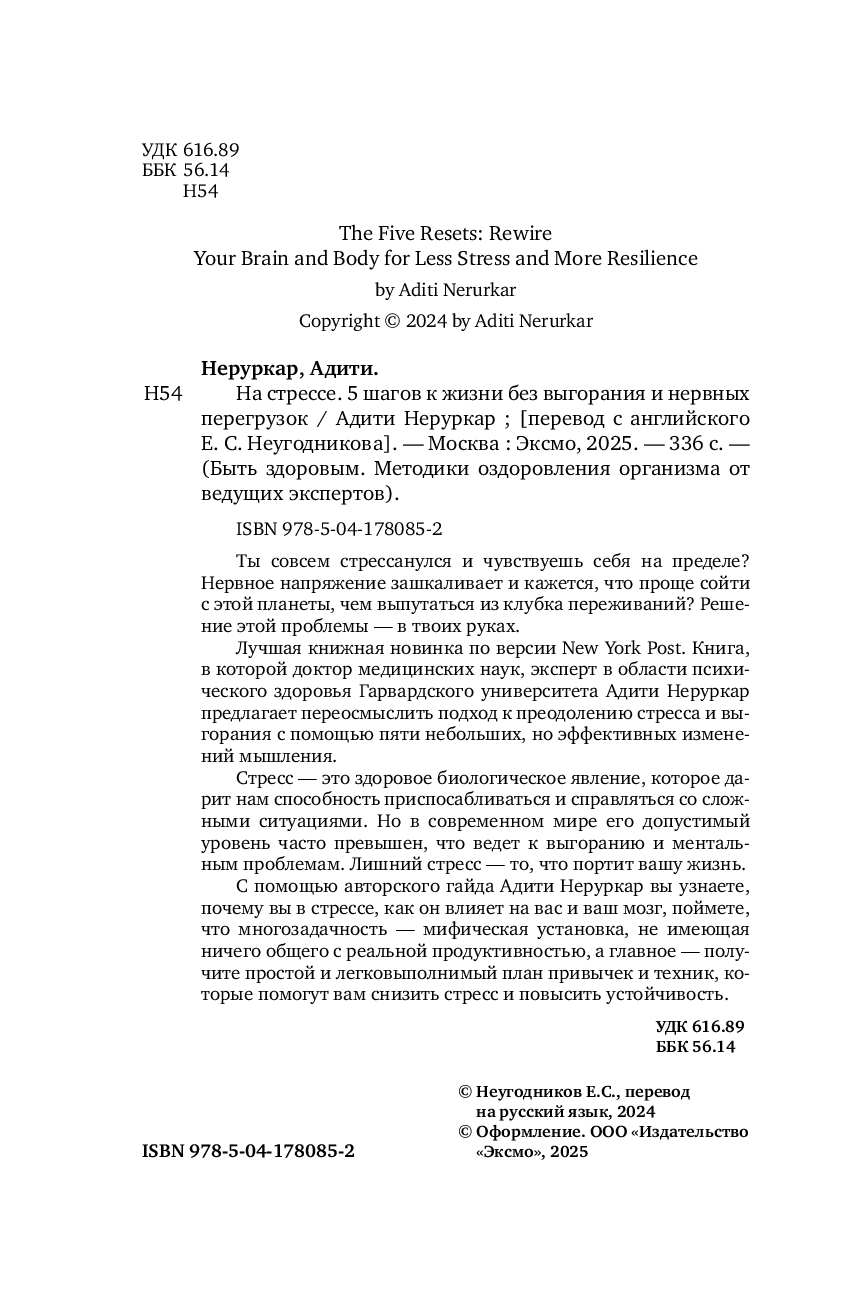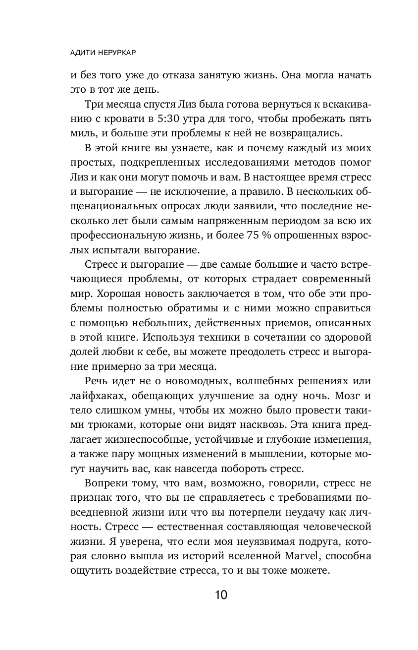 "Лучшая книжная новинка" по версии New York Post. Книга, в которой доктор медицинских наук, эксперт в области психического здоровья Гарвардского университета Адити Неруркар предлагает переосмыслить подход к преодолению стресса и выгорания с помощью пяти небольших, но эффективных изменений мышления.