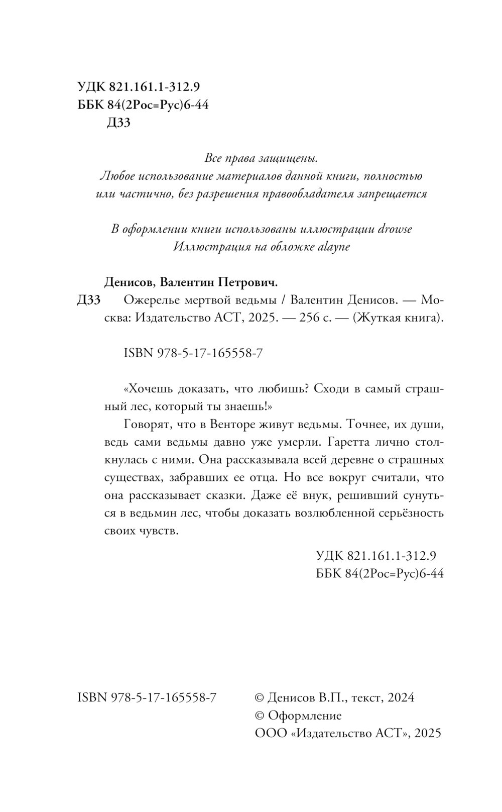 "Хочешь доказать, что любишь? Сходи в самый страшный лес, который ты знаешь!" Говорят, что в Венторе живут ведьмы. Точнее, их души, ведь сами ведьмы давно уже умерли. Гаретта лично столкнулась с ними. Она рассказывала всей деревне о страшных существах, забравших ее отца. Но все вокруг считали, что она рассказывает сказки. Даже её внук, решивший сунуться в ведьмин лес, чтобы доказать возлюбленной серьёзность своих чувств.