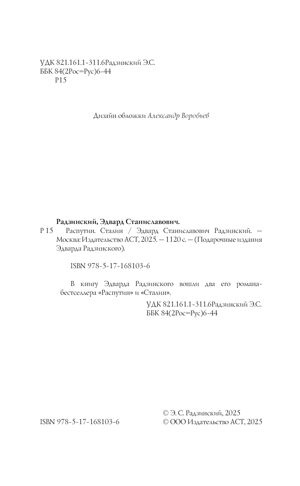 В книгу Эдварда Радзинского вошли два его романа-бестселлера "Распутин" и "Сталин".
