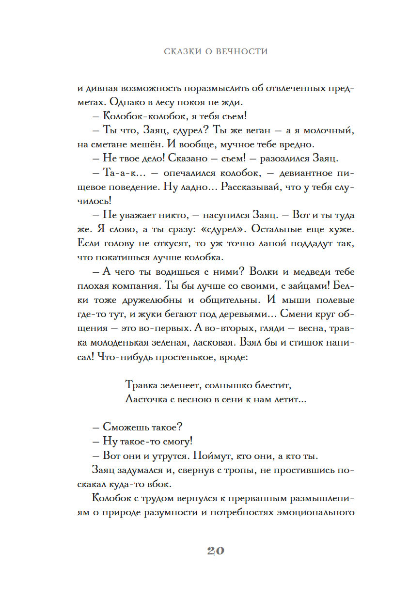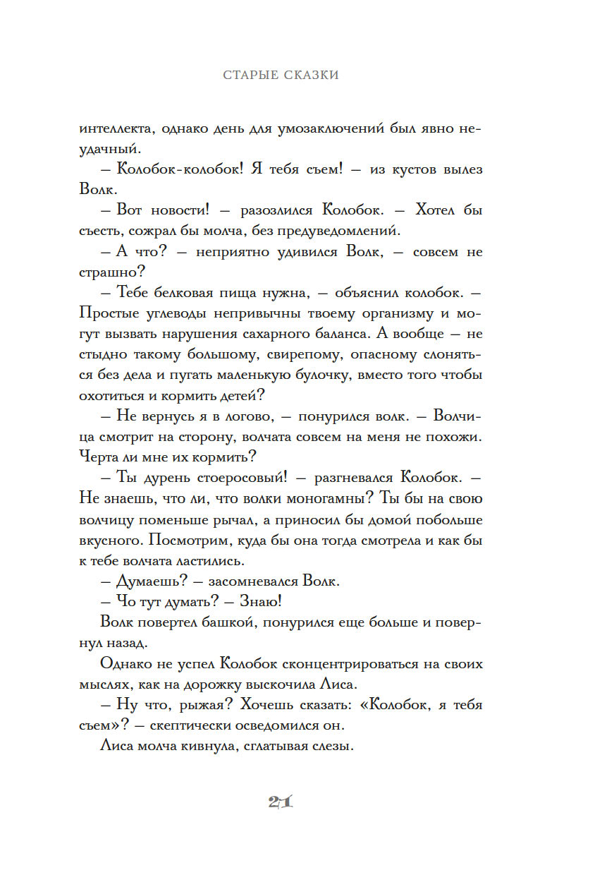 А еще в этой удивительной книге золотая рыбка устраивает свою личную жизнь, пока Колобок решает психологические проблемы своих недругов. Тем временем серый волк может серьезно пострадать от коварного замысла Красной Шапочки.