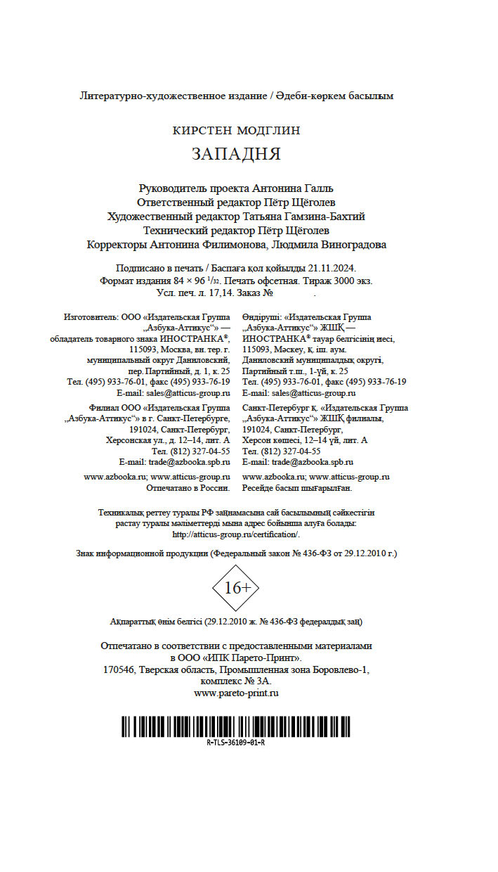 | Изготовитель | ООО "Издательство "Иностранка". 109017, РФ, г. Москва, ул. Пятницкая, 41 |