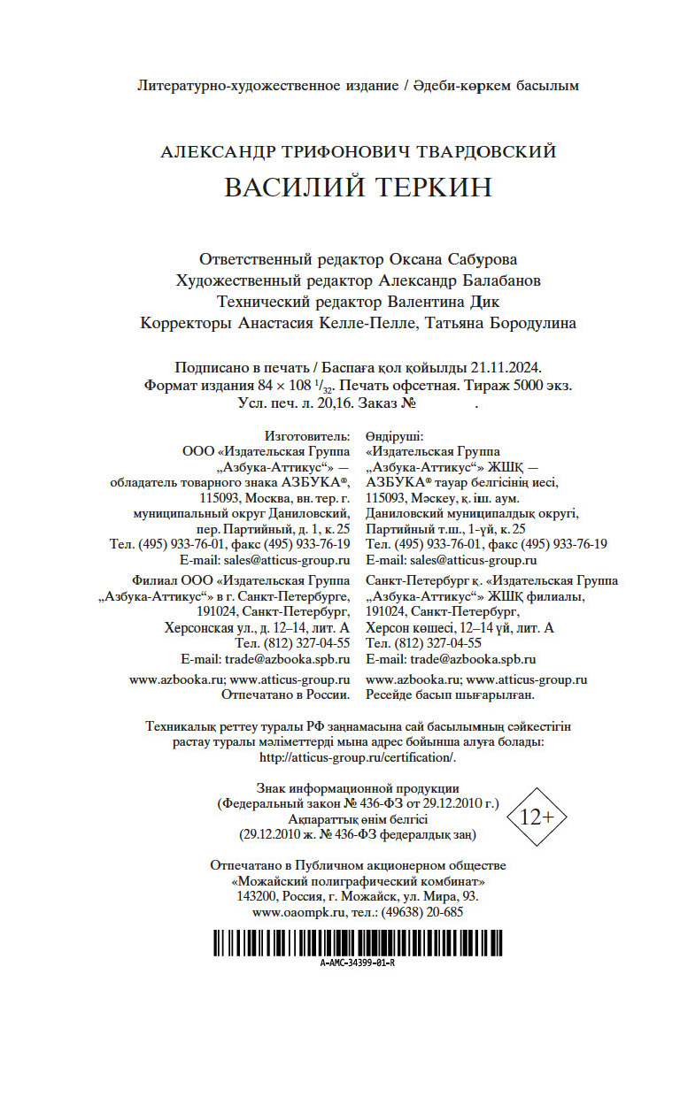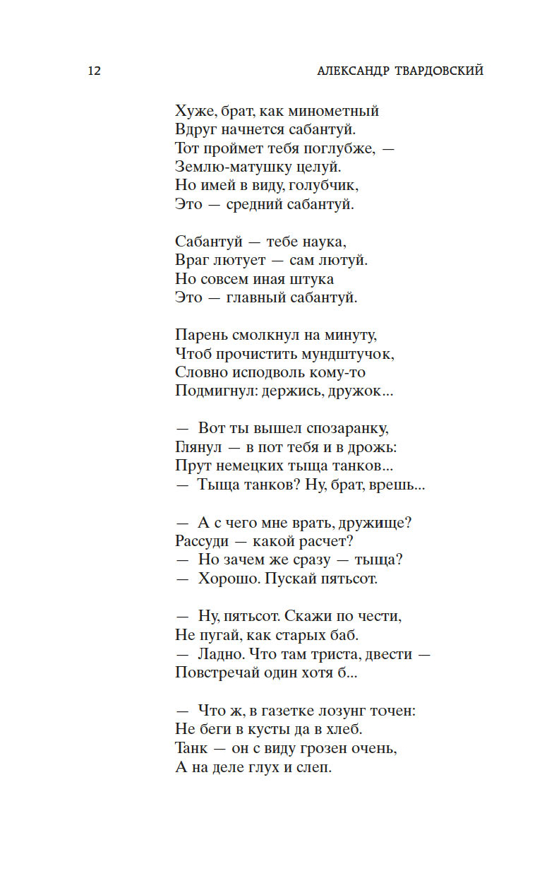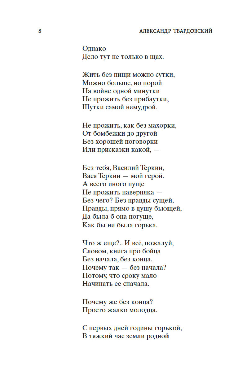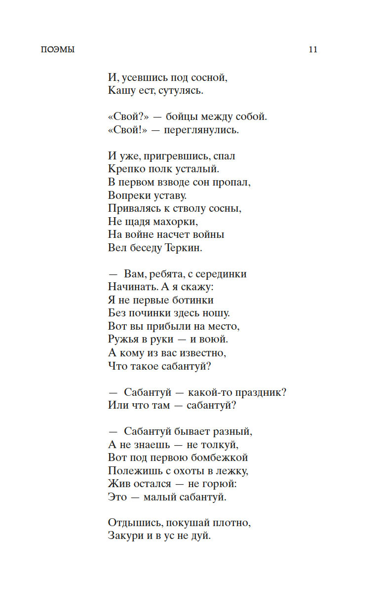 В истории русской литературы мало найдется произведений, которые могли бы сравниться с "Василием Теркиным" по популярности и той поистине всенародной любви, которая выпала на долю знаменитой поэмы Александра Твардовского, выдающегося советского поэта и писателя, главного редактора легендарного журнала "Новый мир", ставшего рупором свободы во времена "оттепели". Основная часть поэмы была создана в годы Великой Отечественной войны и печаталась в виде отдельных глав, которые имели оглушительный успех у читателей; продолжения книги о храбром и неунывающем бойце с нетерпением ждали "живущие на войне люди". "„Василий Теркин" – это лучшее из всего написанного о войне на войне", – отзывался о поэме Константин Симонов.
