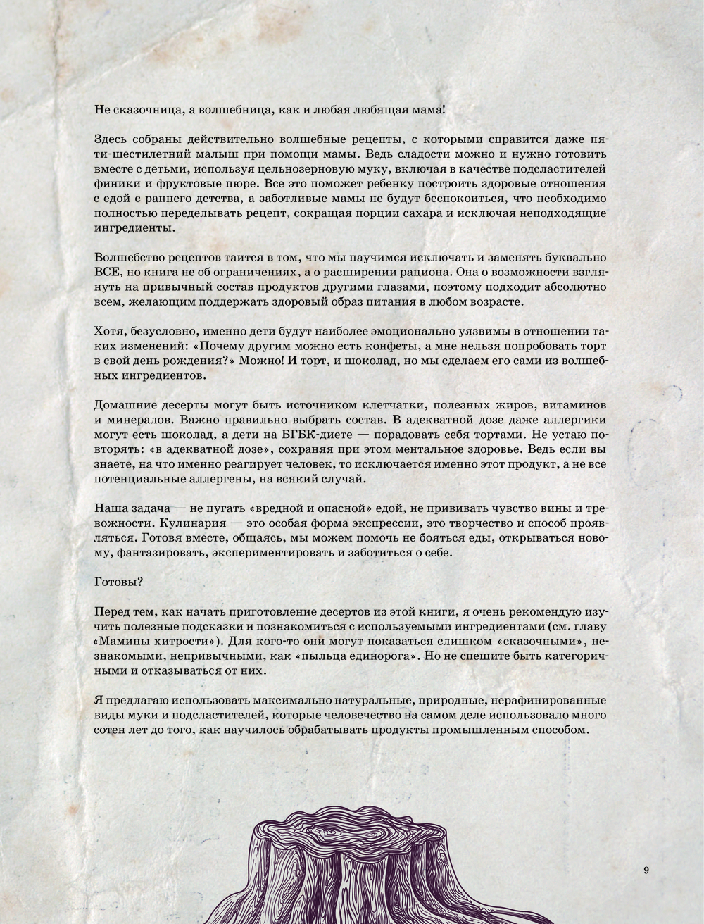 В книге собраны действительно волшебные рецепты, с которыми справятся даже малыши при помощи мамы. Ведь сладости можно и нужно готовить вместе с детьми, используя цельнозерновую муку, включая в качестве подсластителей финики и фруктовые пюре. Все это поможет ребенку построить здоровые отношения с едой с раннего детства. При этом заботливые мамы не будут беспокоиться о том, что необходимо полностью переделывать рецепт, сокращая порции сахара.