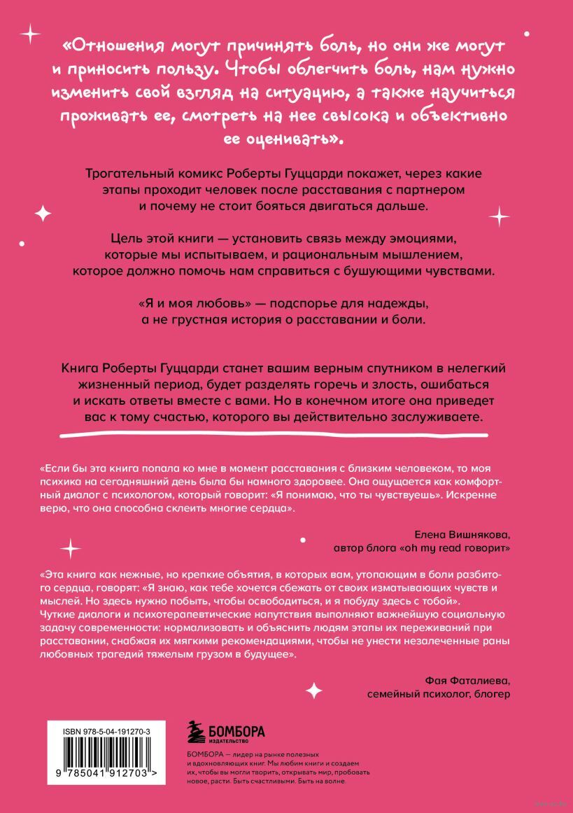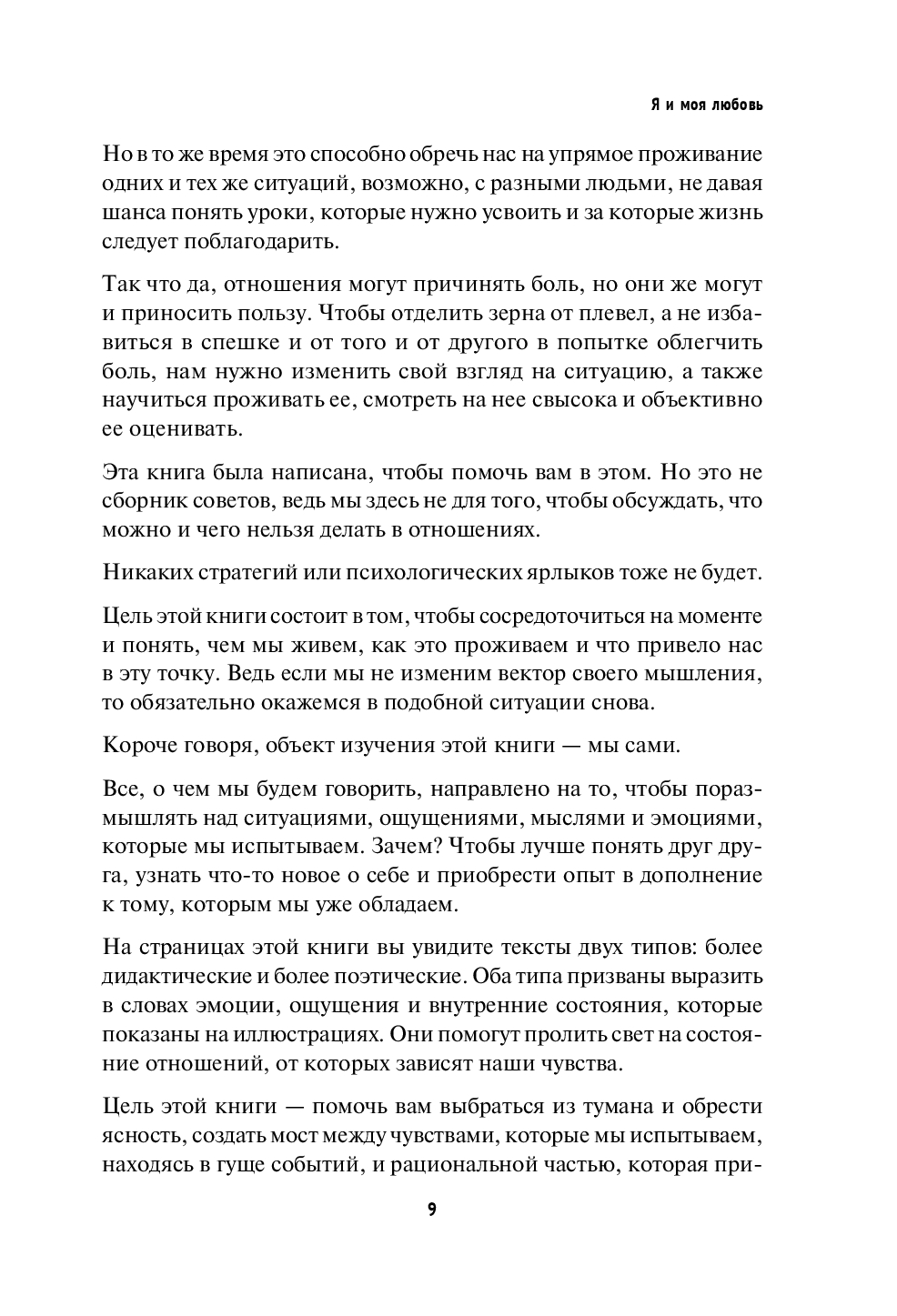 Ее трогательный комикс покажет, через какие этапы проходит человек после расставания с партнером. Но "Я и моя любовь" – это не книга о расставании и боли, вызванной разочарованием, а подспорье для надежды. Она предоставит вам возможность взглянуть на свои эмоции под новым углом, чтобы понять, где вы находитесь, куда больше не хотите идти и где следовало бы выбрать другой путь.